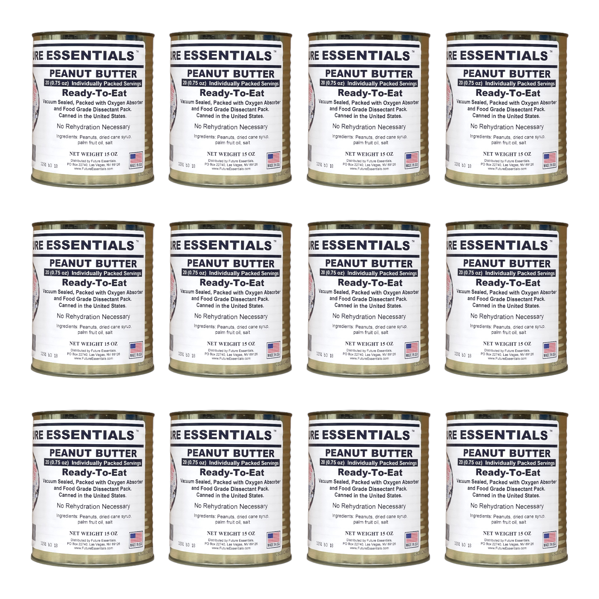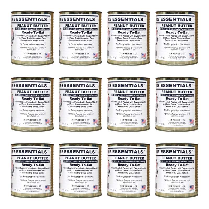 Each can contains 20 (0.75 oz) individual servings of creamy peanut butter. There are 12 cans per case and 6 cans per half-case. This is not dehydrated peanut butter, this is actual ready-to-eat peanut butter. This is the ultimate snack, it is high in calories and the kids will love it. It is canned with an oxygen absorber and desiccant.