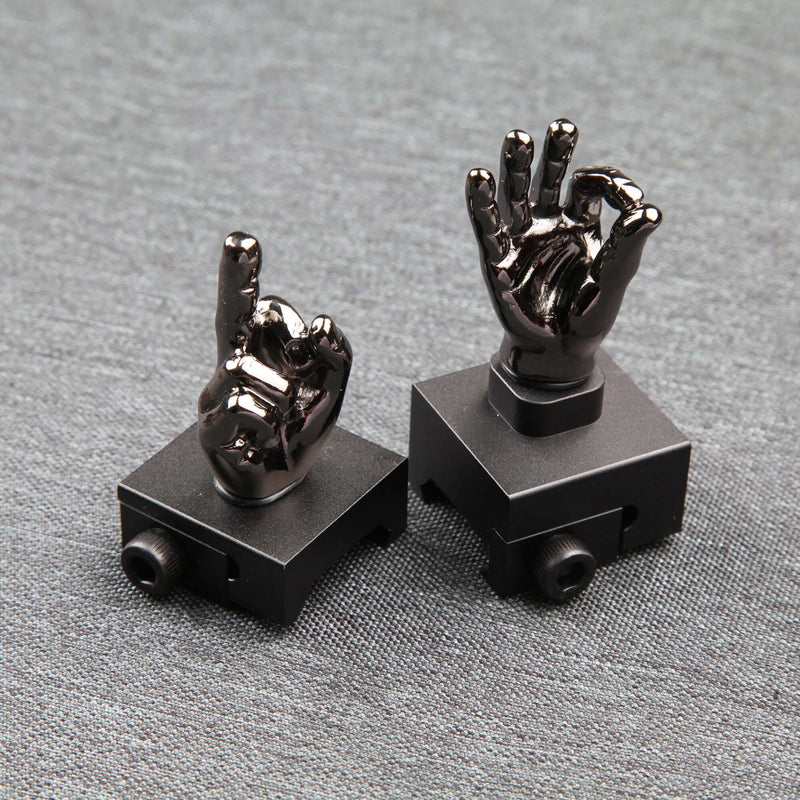 Gloss Tungsten Grey Color Novelty Finger Iron Sight Set - Straight (Middle Finger & OK Hand) (SC)