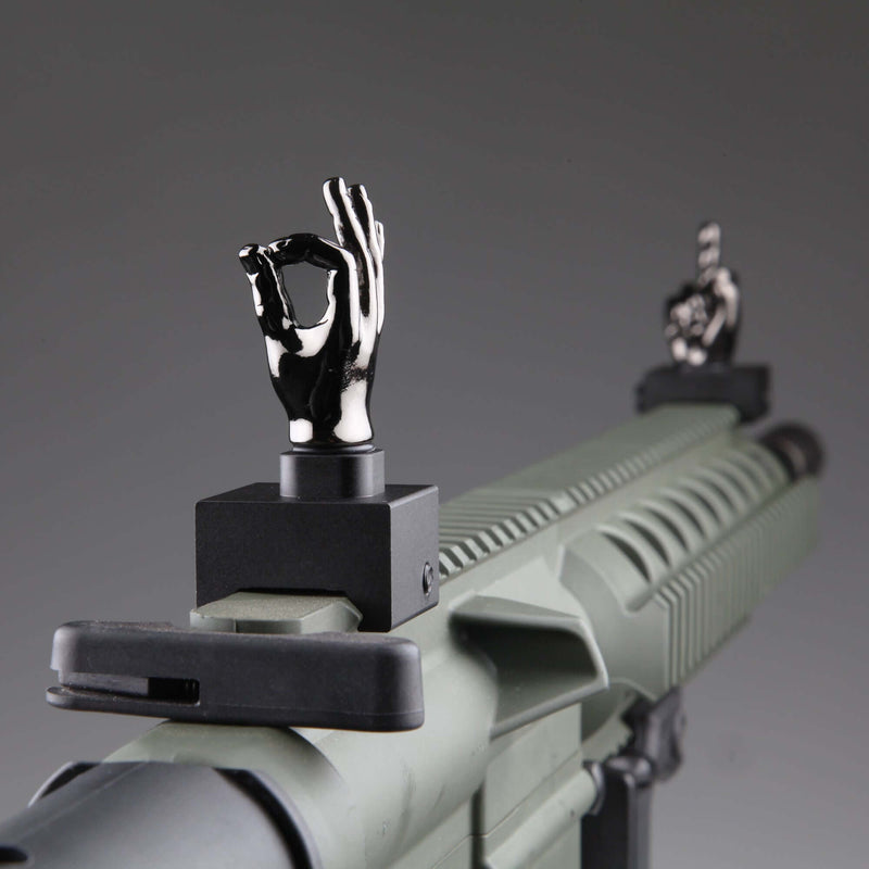 DISCLAIMER: The novelty finger iron sight set sold on this website can be installed on real firearms. However, it is important to note that this product is intended for novelty and entertainment purposes only and should not be relied upon as a serious firearm accessory. We are not responsible for any injuries, damages, or legal issues that may arise from the use of this product as a firearm accessory. Always handle firearms with proper safety precautions and use only accessories that are specifically designed and tested for use with firearms. By purchasing this product, you assume all responsibility for its use and agree to use it responsibly and in accordance with all applicable laws and regulations.
