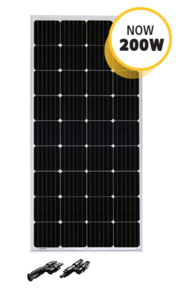 - 200 Watt, 9.6 amp aluminum framed solar panel