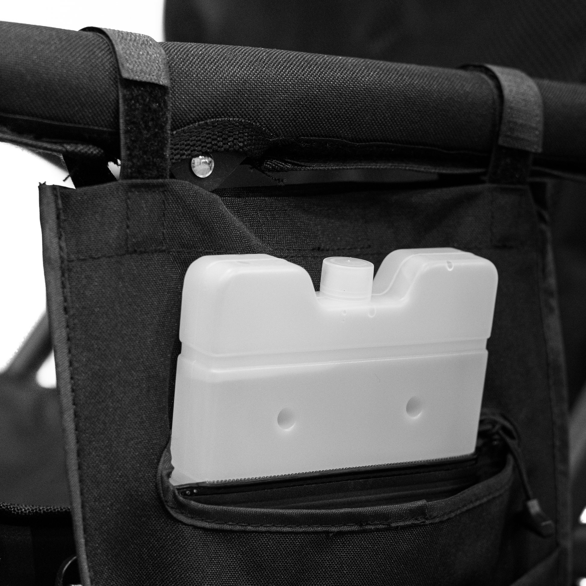 Slim, contoured design slides easily into the chair’s cooling pocket