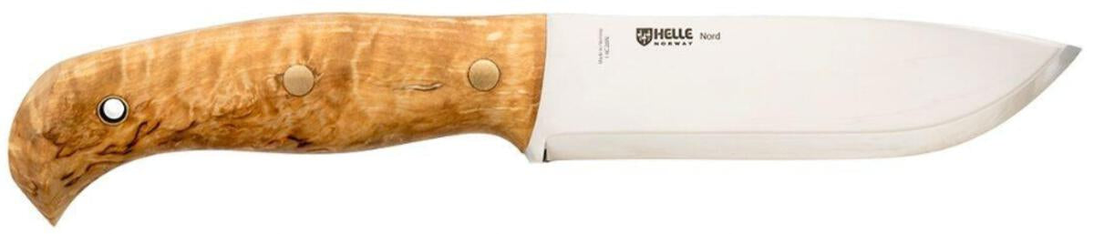 The Helle Nord is the first one of its kind from Helle. There has been a lot of talk about these over the last few months. I just got to hold one in my hand and it sure is quite the knife. The Thick full tang blade will hold up to just about anything in the bushcraft world much less normal use. They sure figured out the geometry for this big blade. It is quite comfortable. This item comes with a genuine leather sheath.