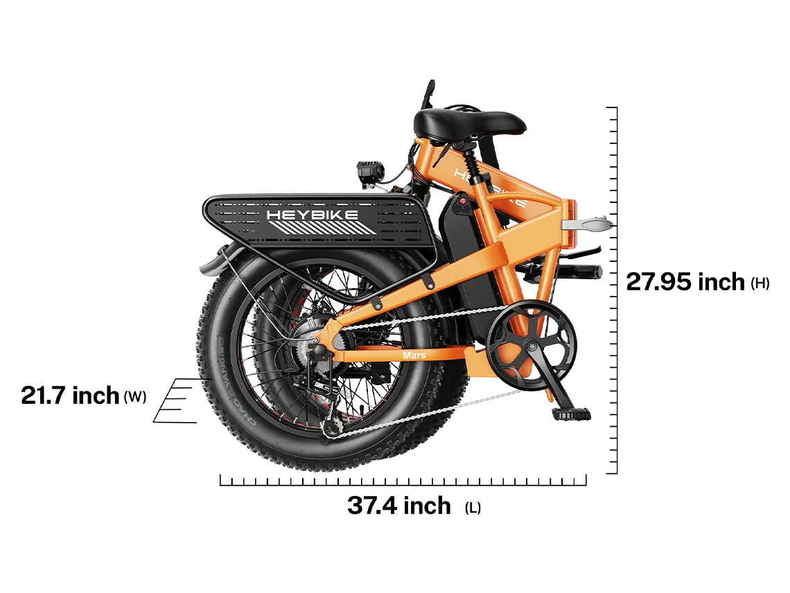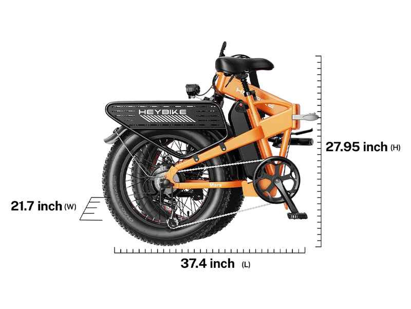| Weight & Size | ~34 kg (≈75 lbs); folded: 37.4×21.7×27.95 in; unfolded: 67×25×49 in Heybike |