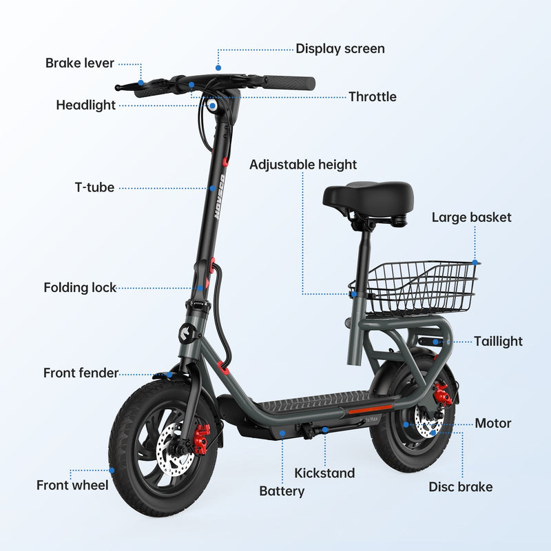Experience the freedom of hassle-free commuting with the HOVSCO Porto Max Electric Scooter, the first height-adjustable scooter that comes equipped with a detachable seat and a removable basket. Perfect for grocery shopping or quick errands, this innovative scooter combines comfort and convenience to elevate your daily travels.