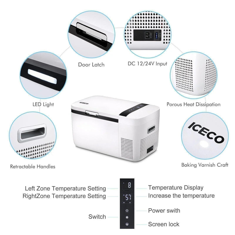 Introducing the ICECO GO20 21QT Dual Zone 12V Portable Freezer, the ultimate companion for your adventures! This state-of-the-art electric cooler combines flexibility and efficiency with its unique dual-zone design, allowing you to seamlessly switch between refrigeration and freezing, making it perfect for camping, road trips, or home use.