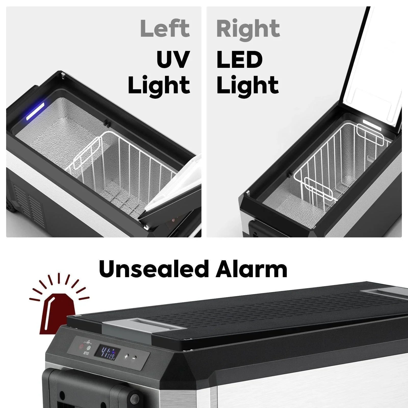 - Smart Design Features: The multi-directional lid allows for easy access from any angle, and the optional UV light function keeps your fridge sanitized, ensuring safe food storage during all your adventures.