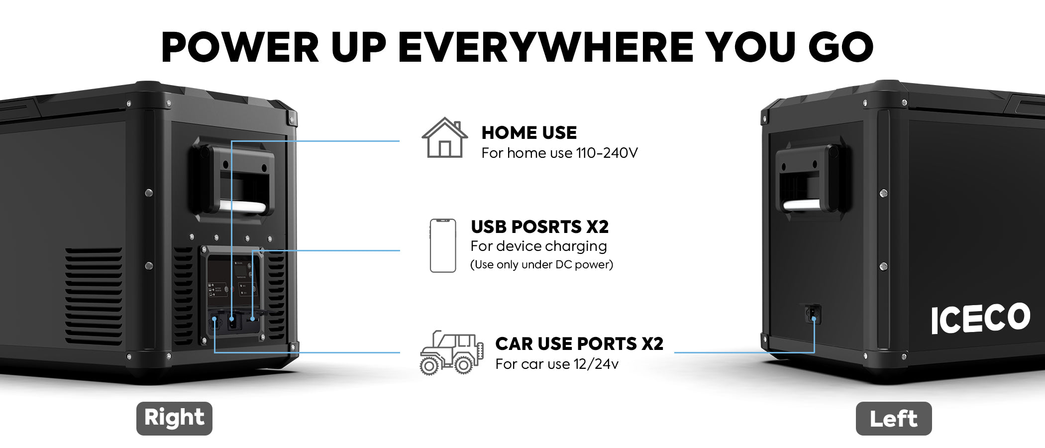 - Convenient Power Options: Equipped with 12/24V DC ports on both sides and 2 USB outlets for charging your mobile devices, this cooler provides multiple power solutions for any scenario.