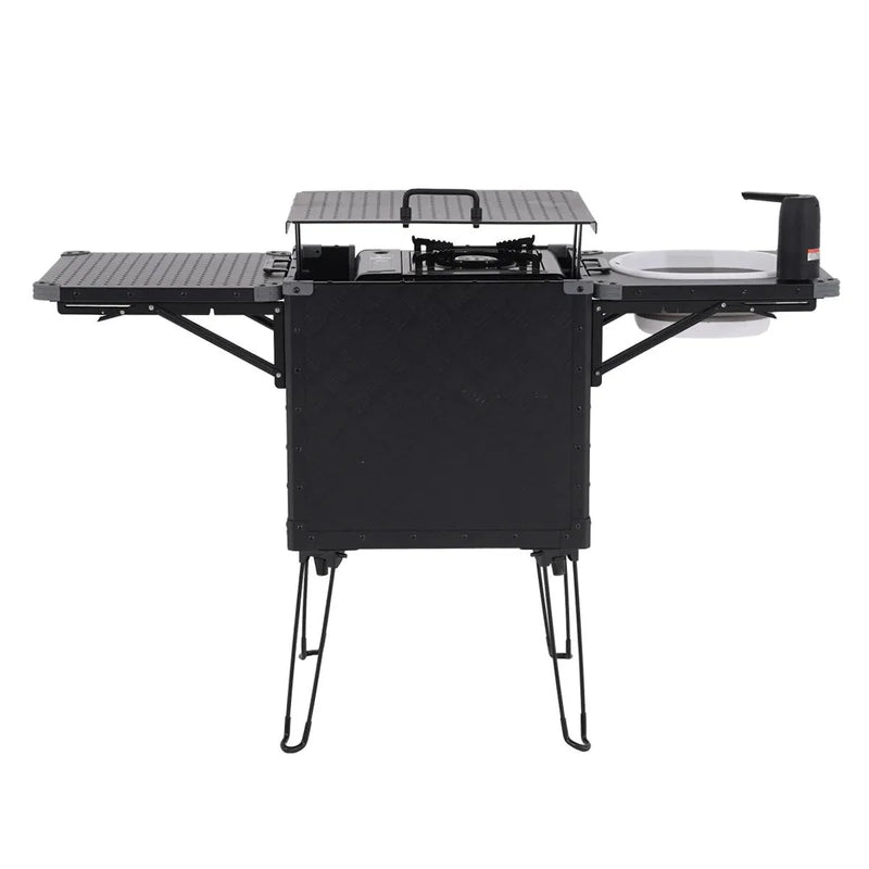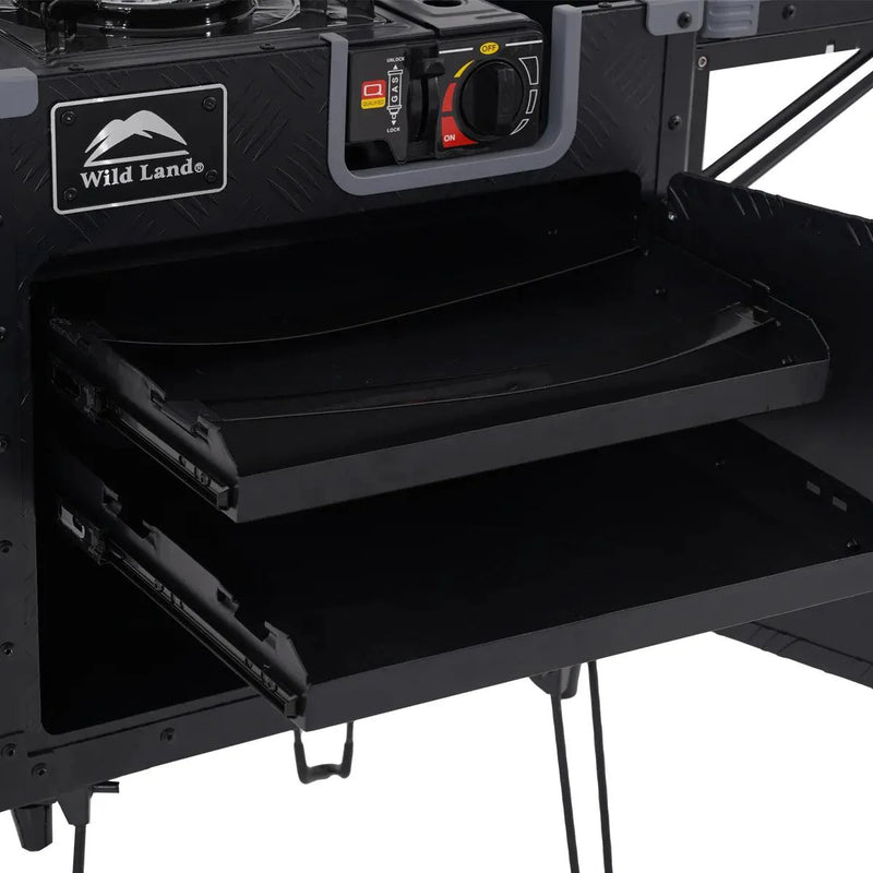 When campers want convenience and space for their outdoor cooking plans, Wild Land Compact Integrated Stove & Kitchen can fulfill those needs with its aluminum command center that includes a stove, cutting board,sink,slide-out storage drawer and liftable shelf, which all fold into one perfect compact container for storage.