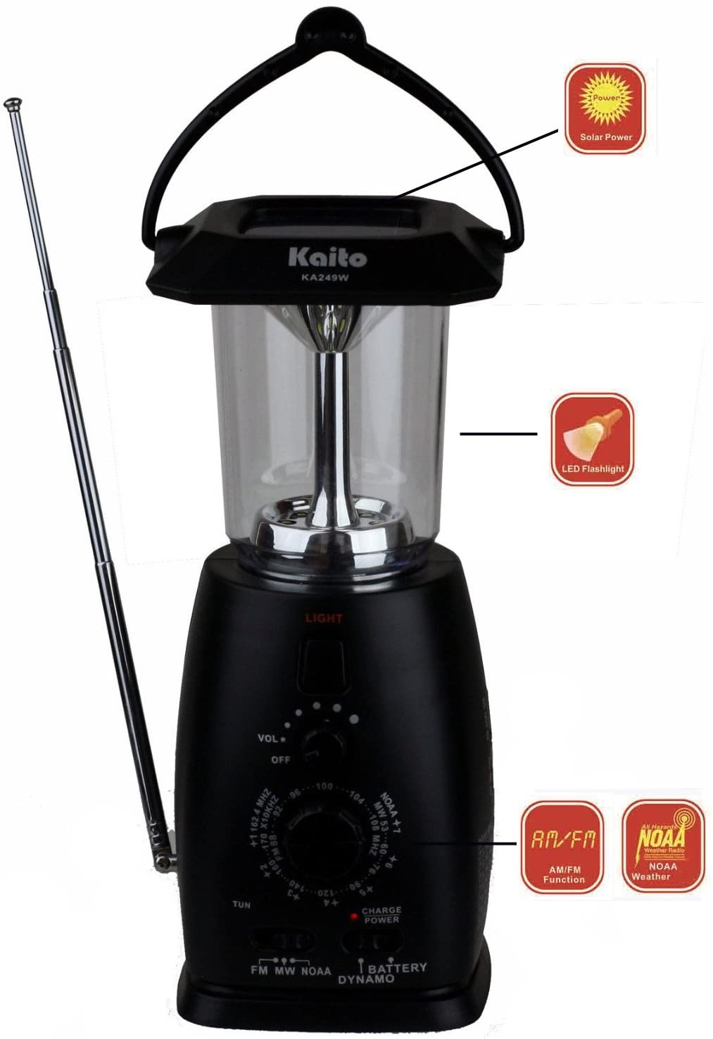 Kaito KA249W Solar Crank LED Camping Lantern with AM FM NOAA Weather Radio Black (SC)