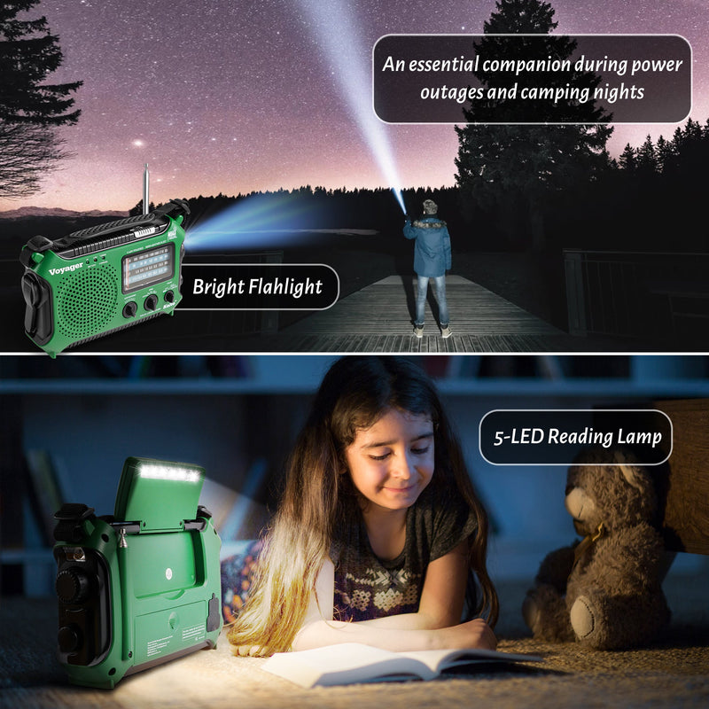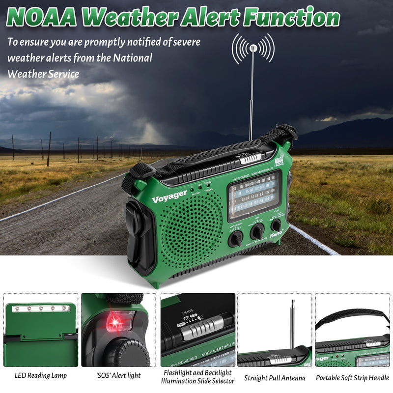 7 pre-set NOAA weather channels with real-time alerts for hurricanes, storms, and other emergencies—just turn the switch to tune in, no scanning required