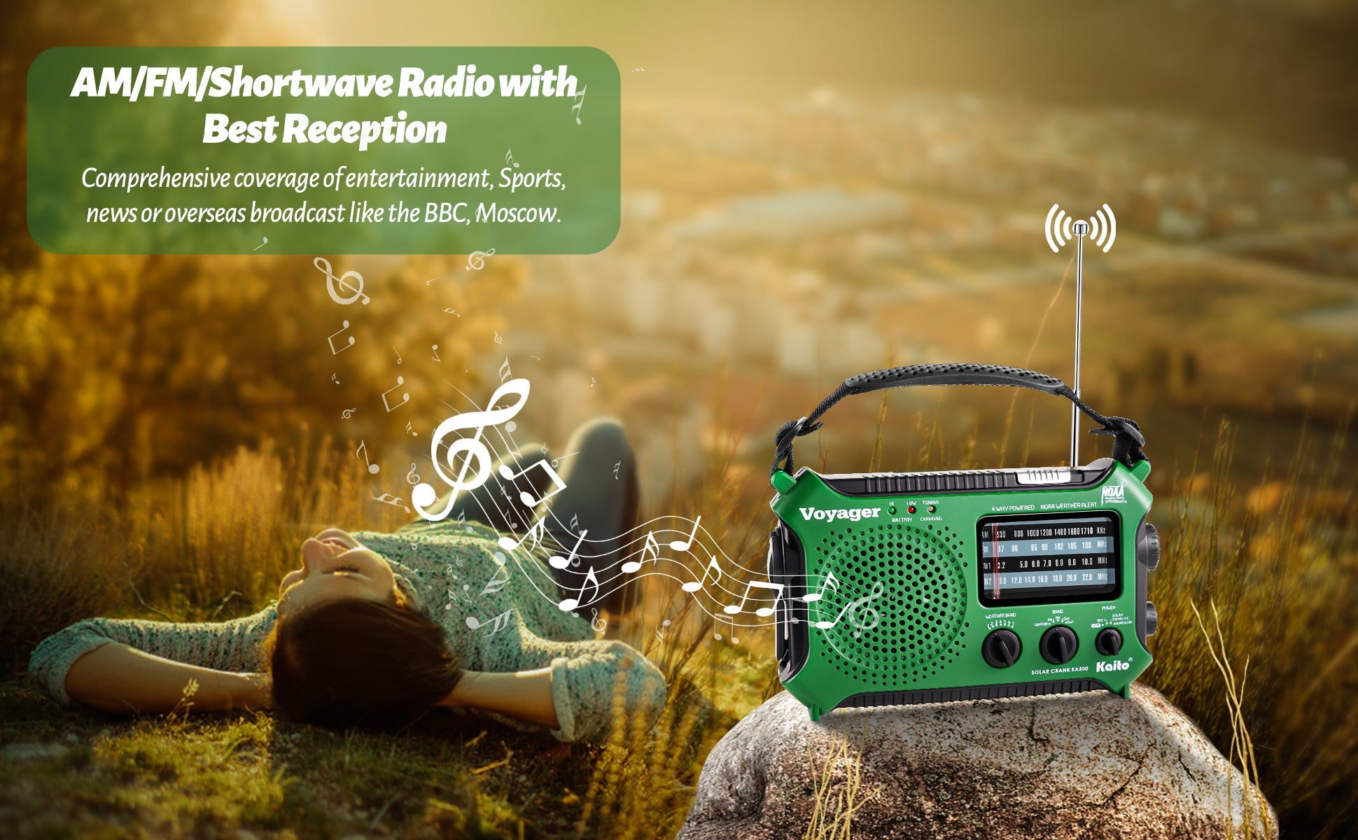 Kaito KA500 AM FM Shortwave Dynamo Solar Crank Emergency Weather Radio Green (SC)