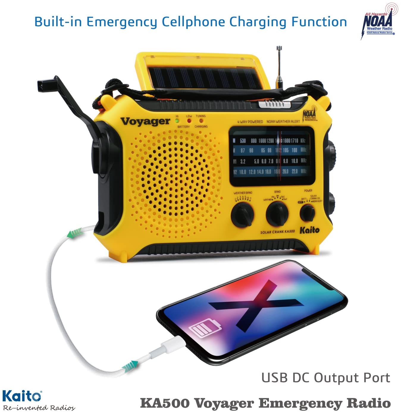 Kaito KA500 Voyager Solar Crank Emergency Weather Alert Radio with Adapter, Yellow (SC)