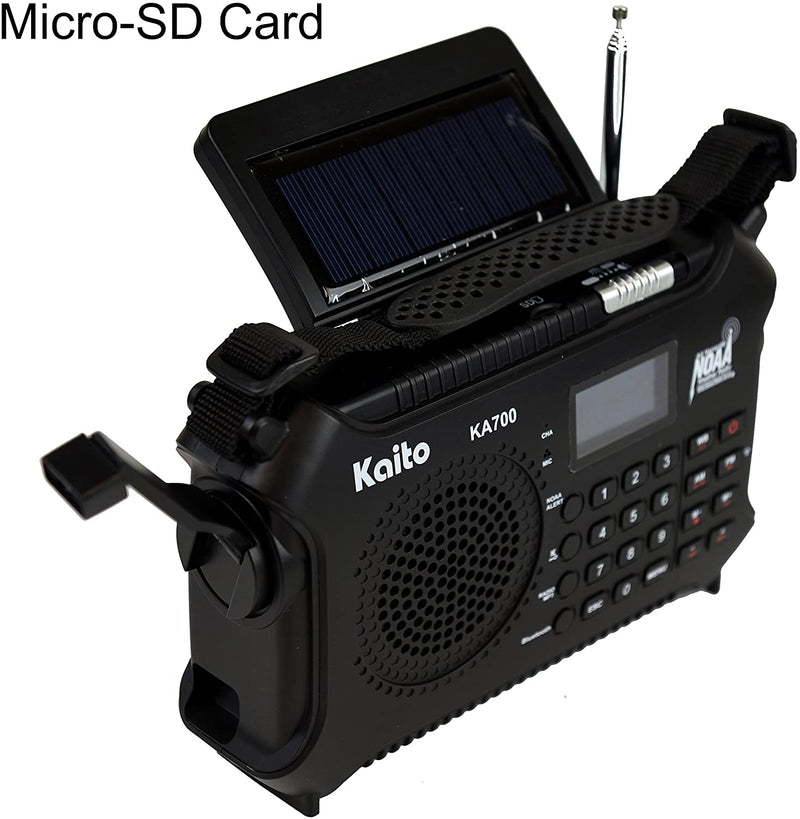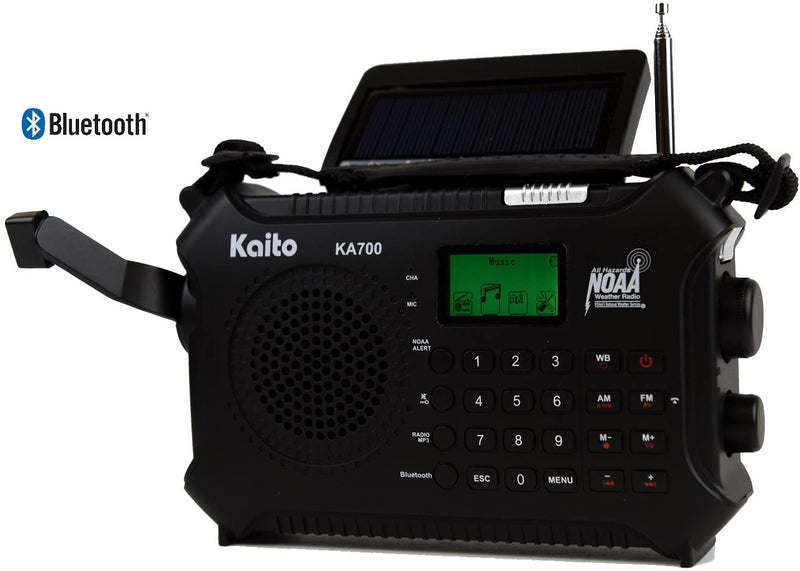 Kaito KA700 AM FM NOAA Weather Radio Recorder Bluetooth Dynamo & Solar - Black (SC)