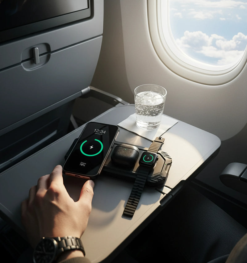 The Lion Eclipse™ is a compact yet powerful 3-in-1 charger that combines wireless and USB charging in one sleek device. Eliminate the clutter of multiple cords and chargers Eclipse powers all your devices with ease. Lightweight and travel-ready, it’s even approved for use on airplanes, making it perfect for life on the go.