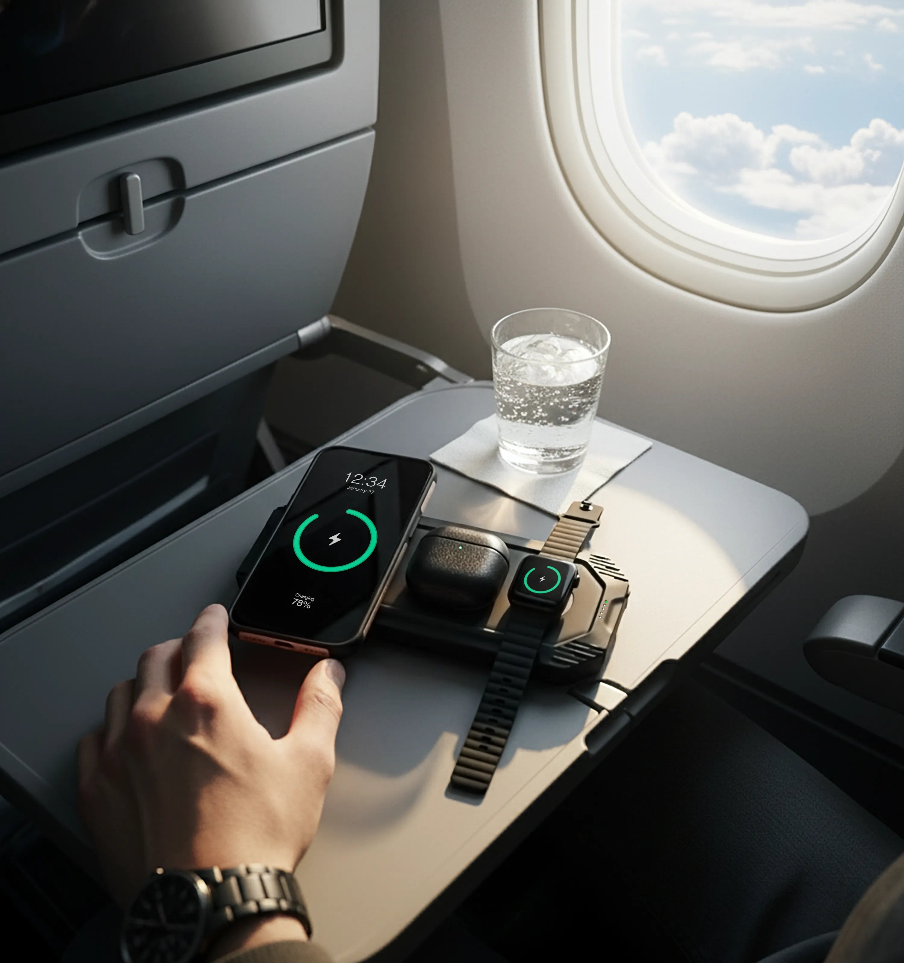 Power through the season with the Eclipse Travel Kit. The Lion Eclipse™ charges phones, earbuds, and smartwatches all with MagSafe or USB ports. Light your way with the 3 LED Light Bulb String and recharge with green energy from the sun with the 50W Foldable Solar Panel.