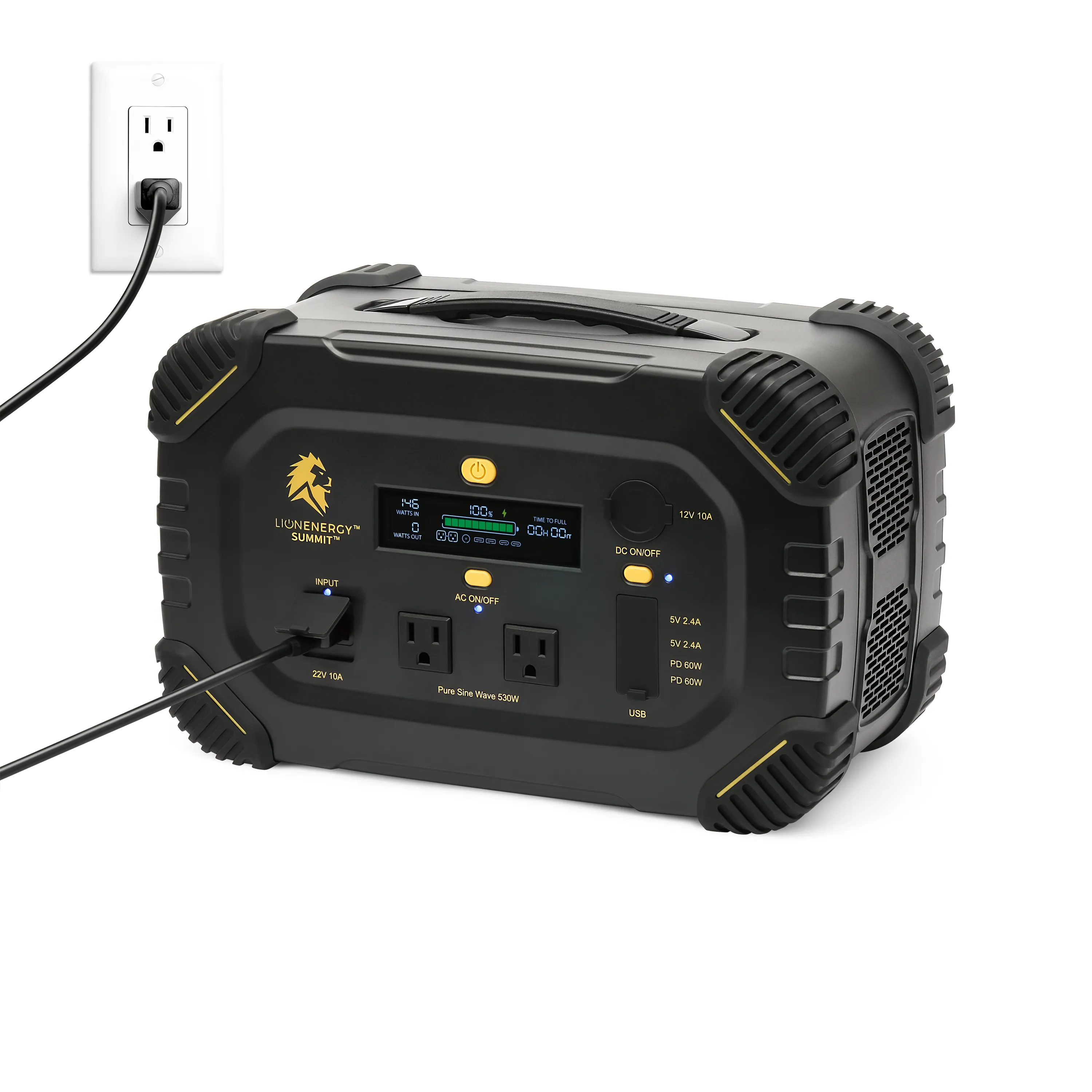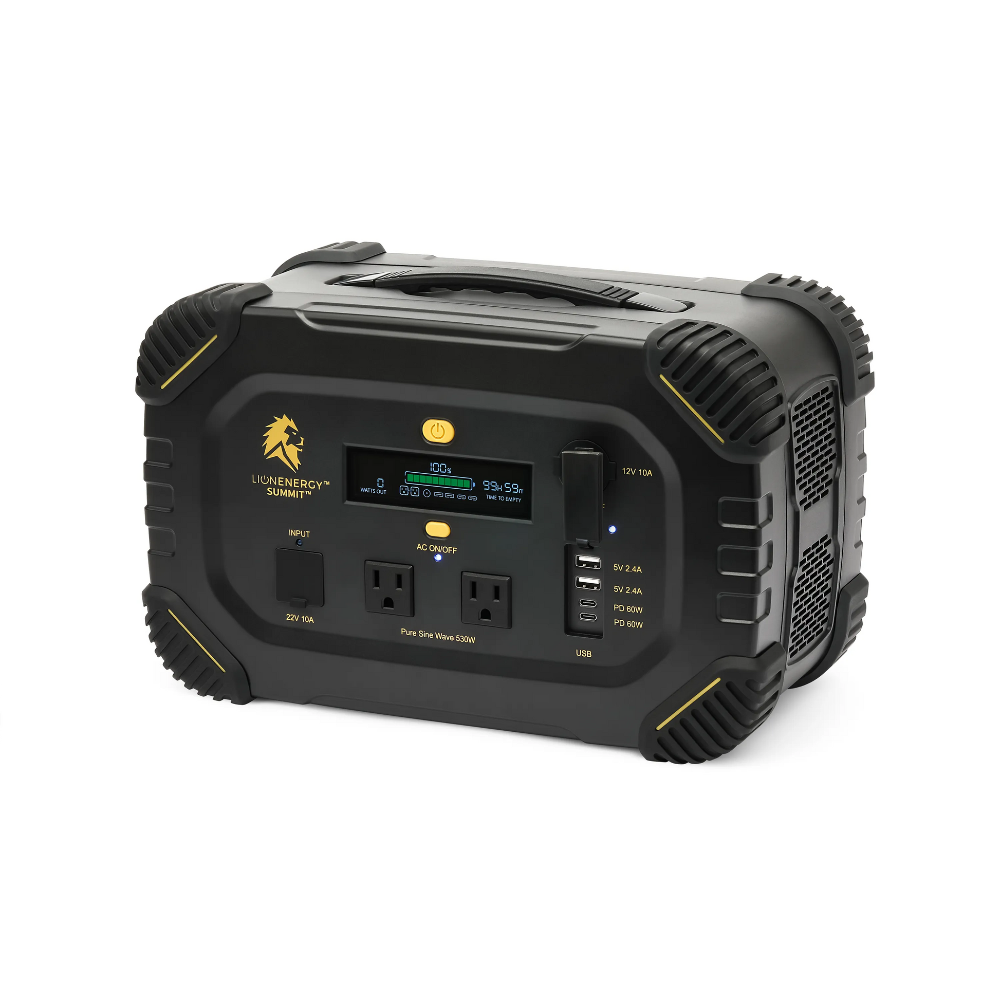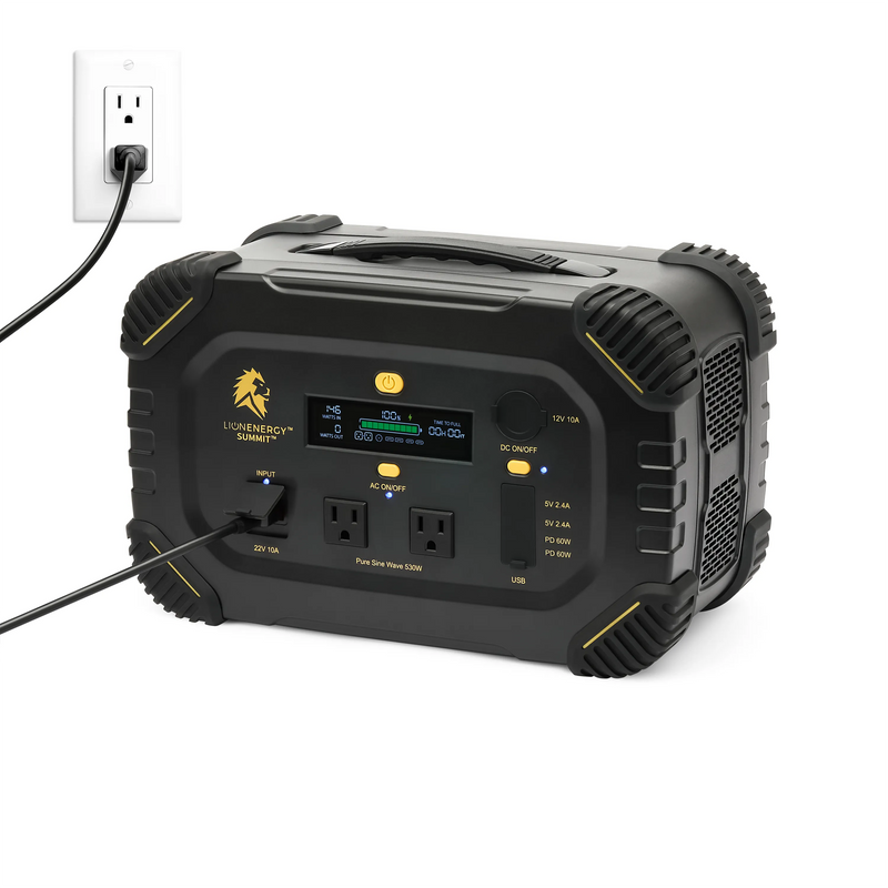 Lion Summit™ – Portable Power Station: Lightweight, solar-powered, and 100% renewable. At just 18 lbs, it delivers 530W/665Wh capacity, charges in 4 hours, and powers cooking, communication, entertainment, CPAP, work, and emergencies. Rugged, pure sine wave safe for electronics, Bluetooth app control, and backed by a 5-year warranty.