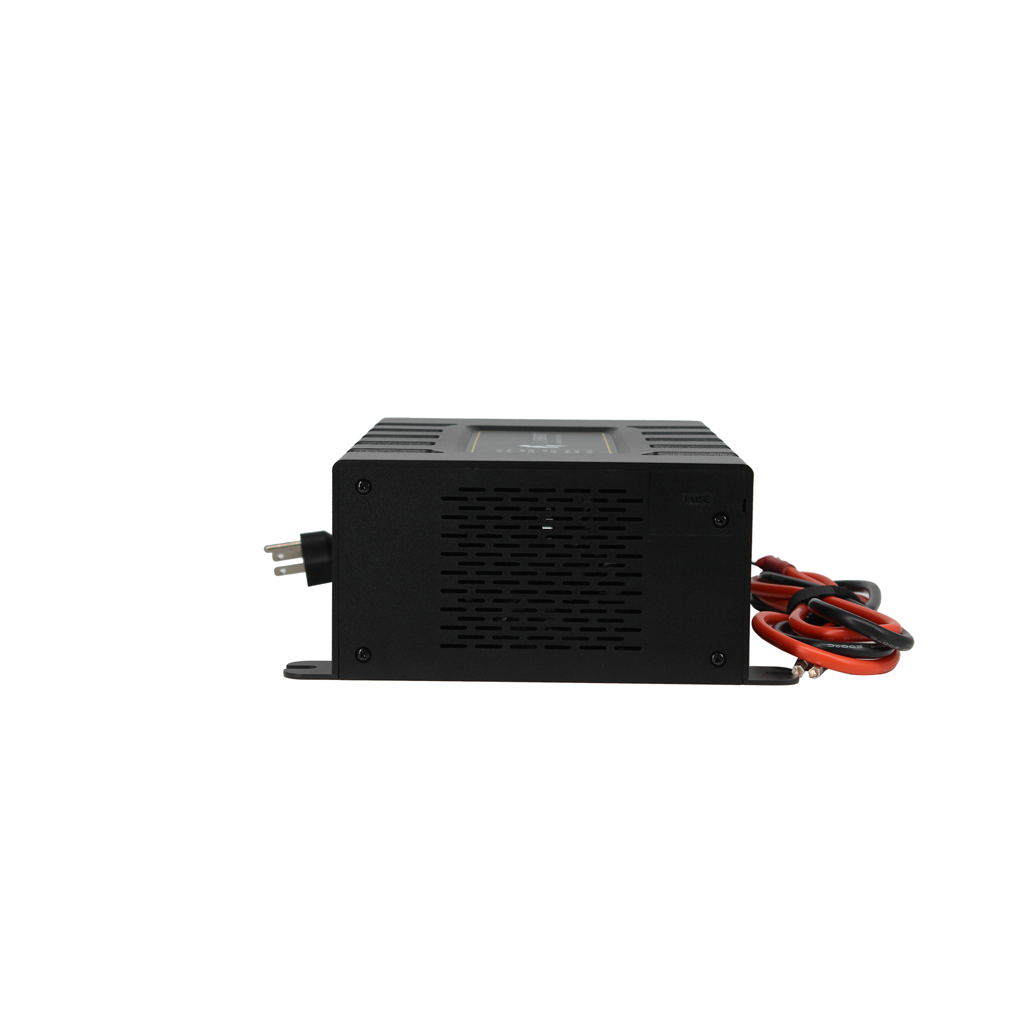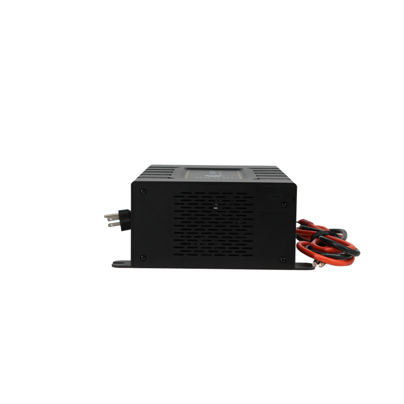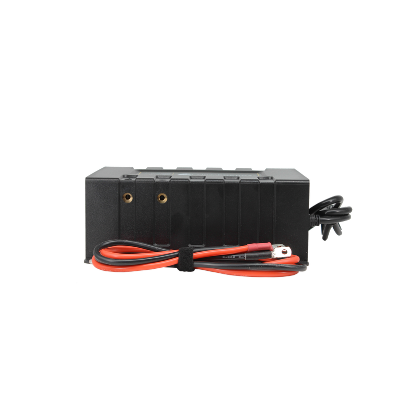 The Savanna BC is a 45-amp lithium (LiFePO4/LFP) built to recharge large batteries quickly and efficiently. Optimized for Lion Energy lithium iron phosphate batteries, it can charge a UT 105Ah battery in just 2.4 hours. All 12-volt Lion Energy lithium batteries should be charged with a LiFePO4-compatible charger like the Savanna BC since using SLA chargers can reduce battery performance and lifespan.