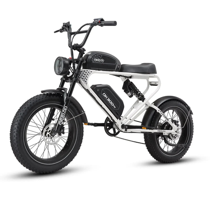 Experience the thrill of retro stylish-inspired electric bike with the Meelod DK300 PRO. With its rugged fat tires and dual batteries, this e-bike takes you on an exhilarating ride for up to 60 miles on a single charge. Powered by a robust 1200W motor, it can reach a top speed of 28mph, giving you the ultimate sense of freedom on the road.