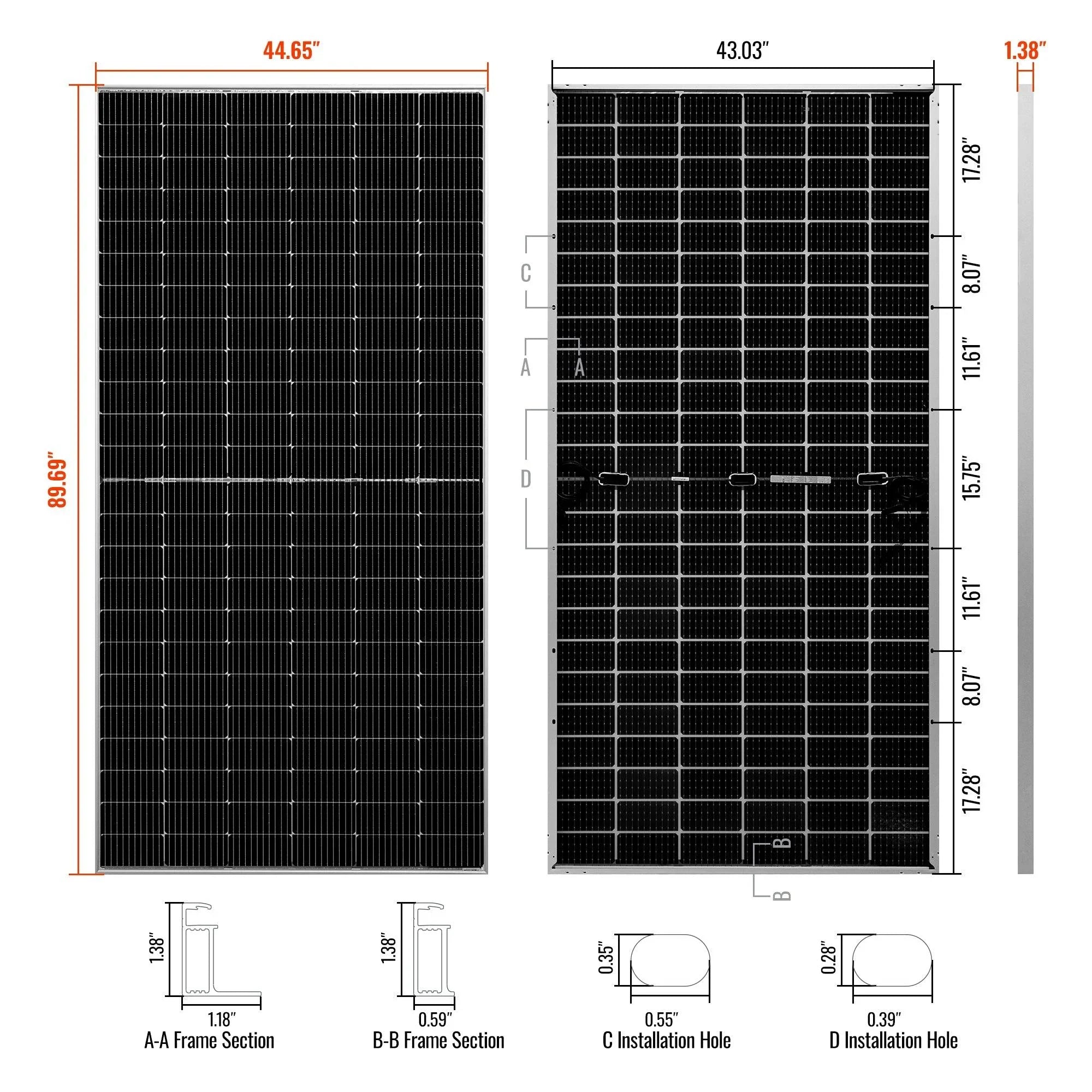 The MEGA 550 solar panel maximizes power generation while minimizing space, equipment necessities, and cost by providing premium solar generation for off-grid systems. With 550W and 24V energy generation, the MEGA 550 can generate renewable energy and reduce electricity bills for any residential, agricultural, or commercial solar systems. Its anodized aluminum frame and tempered glass make it able to withstand any environment it's put in.