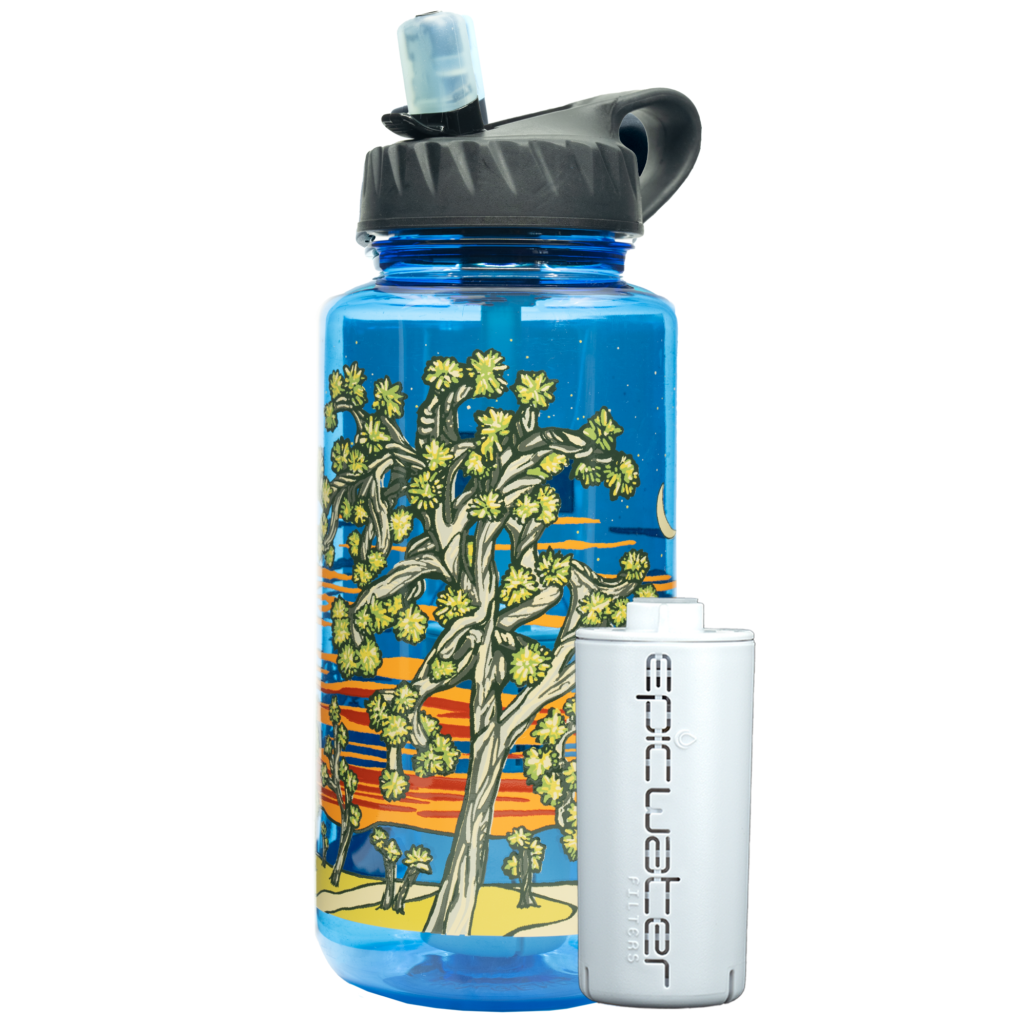 Each of our water bottles now comes equipped with two high-performance, color-coded filter cartridges to suit your hydration needs, wherever you are. For safe and crisp tap water in the U.S., use the EveryTap filter cartridge in blue, specially designed for domestic water sources. When you’re ready to venture into the outdoors or travel abroad, simply switch to the Everywhere filter cartridge in white, engineered with two distinct filter stages to conquer the toughest contaminants in natural and foreign water sources. With Epic, you can drink confidently, knowing you’re covered wherever adventure calls!