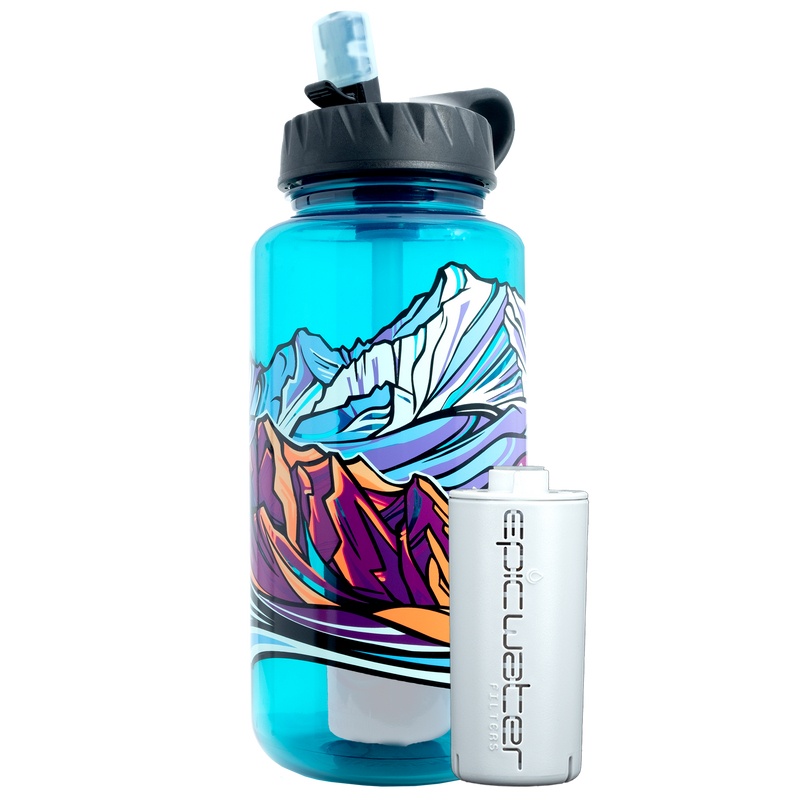 Each of our water bottles now comes equipped with two high-performance, color-coded filter cartridges to suit your hydration needs, wherever you are. For safe and crisp tap water in the U.S., use the EveryTap filter cartridge in blue, specially designed for domestic water sources. When you’re ready to venture into the outdoors or travel abroad, simply switch to the Everywhere filter cartridge in white, engineered with two distinct filter stages to conquer the toughest contaminants in natural and foreign water sources. With Epic, you can drink confidently, knowing you’re covered wherever adventure calls!