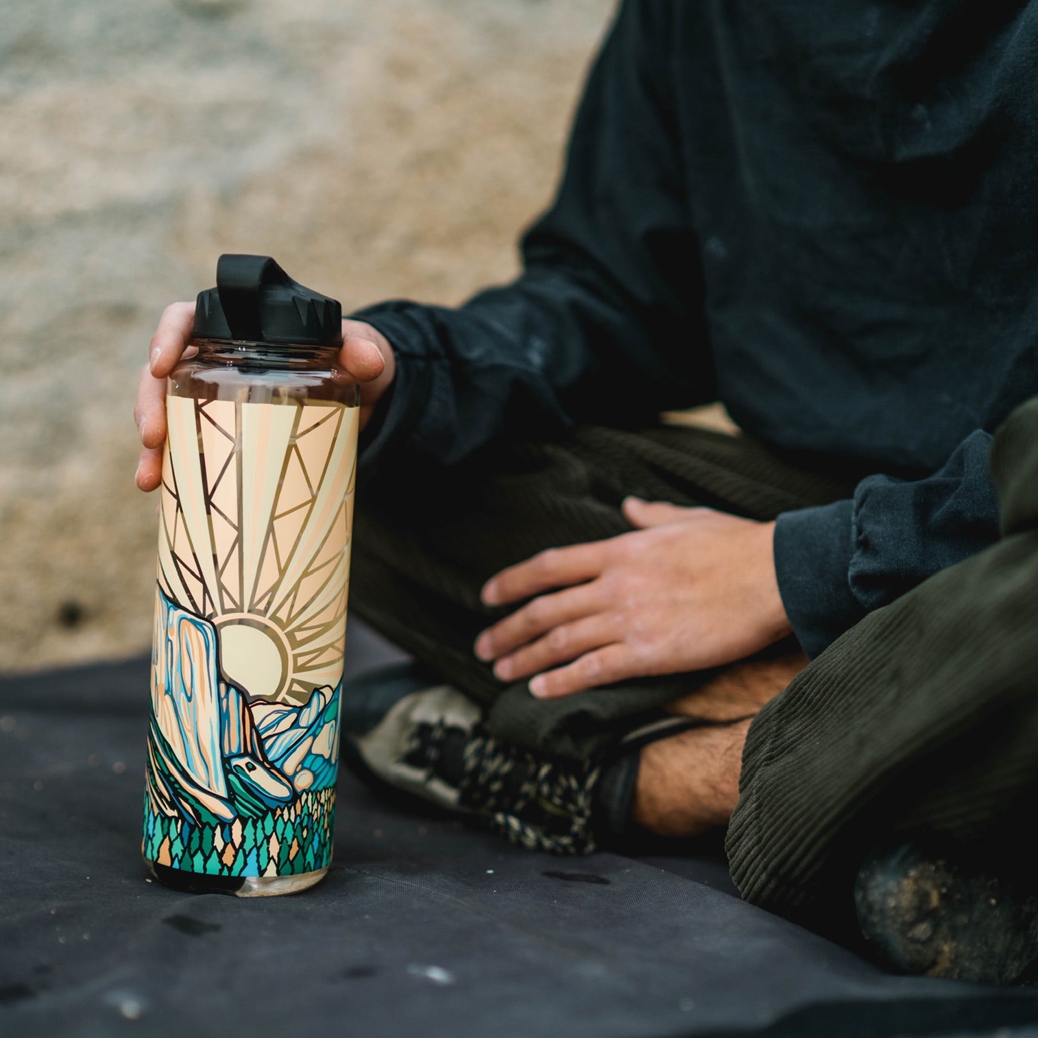 Nalgene Bottle: Nalgene, known for their laboratory containers, discovered their products being used by a Boy Scout troop for camping back in the 1970s, leading to the creation of Nalgene Outdoor Products. We use Nalgene Sustain Bottles, every Sustain bottle is made using resin powered by advanced recycling technology that converts plastic meant for landfills into high-performance made in the USA bottles free of BPA/BPS.