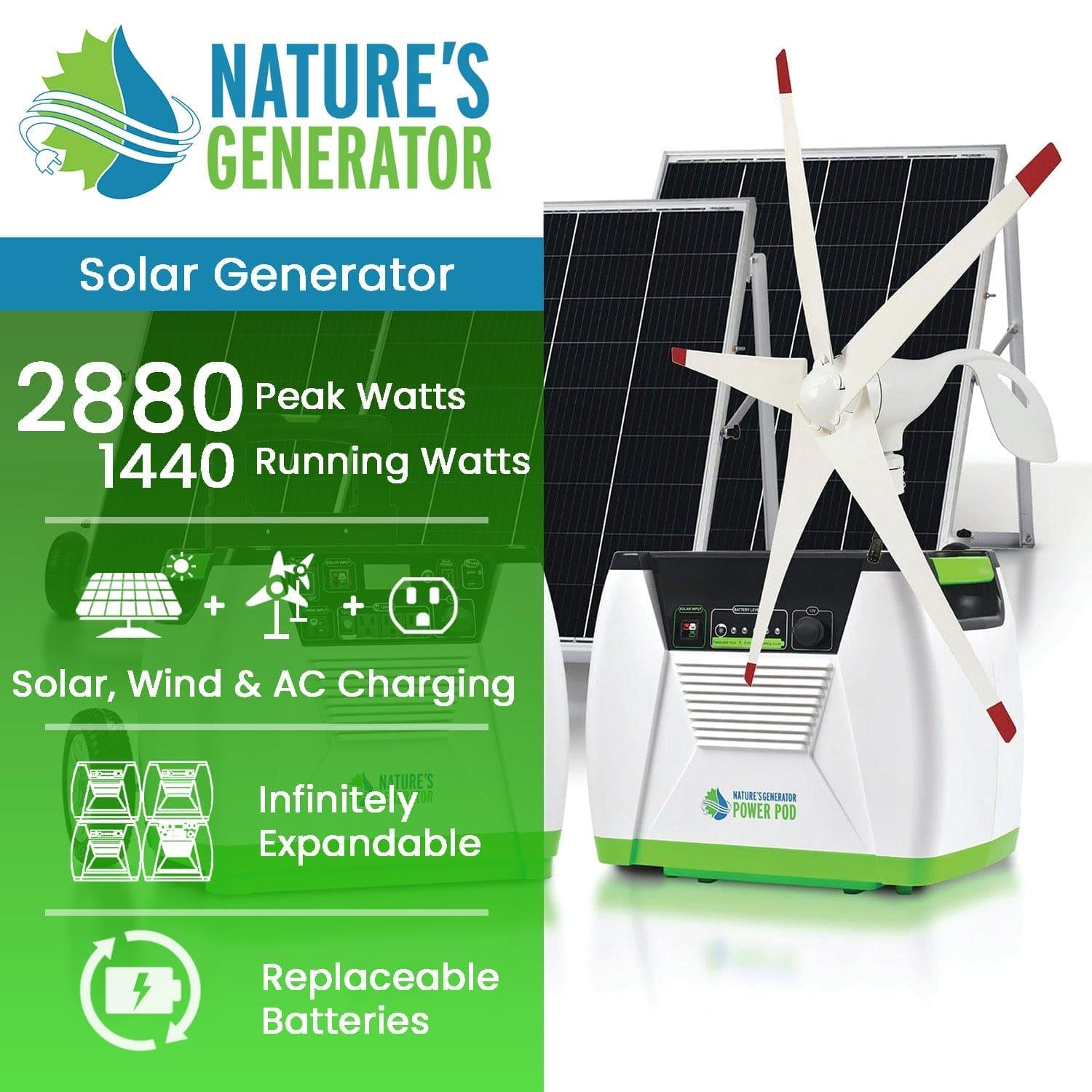 - Continuous Recharge Capability: Equipped with three 100-watt Nature's Generator Power Panels and a Wind Turbine, your system will remain charged and ready for use at all times, ensuring reliability during emergencies or outdoor adventures.