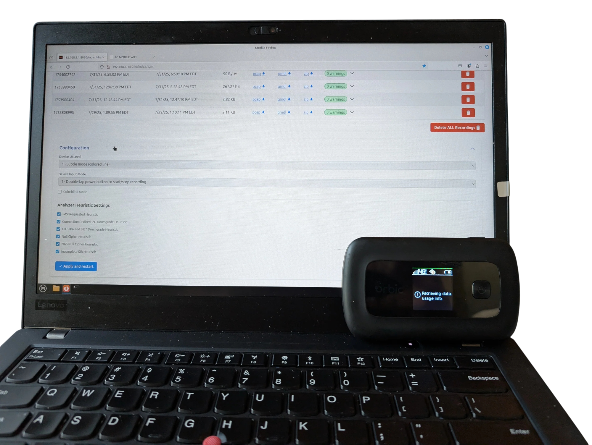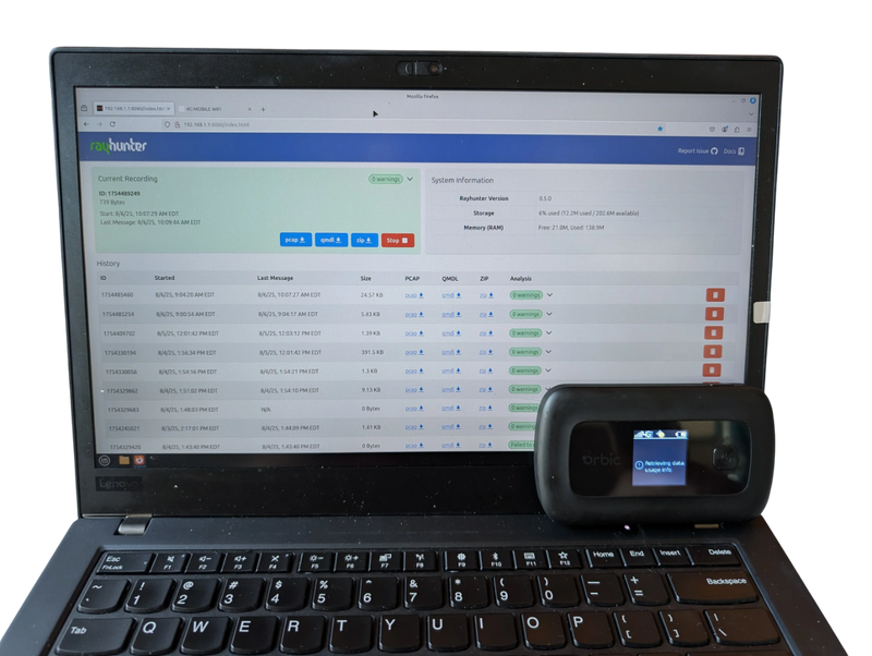 This Orbic RC400L mobile hotspot comes professionally pre-installed with RayHunter v0.8.0, otherwise, the latest stable version at the time of order. We flash all devices at time of shipping.Β
