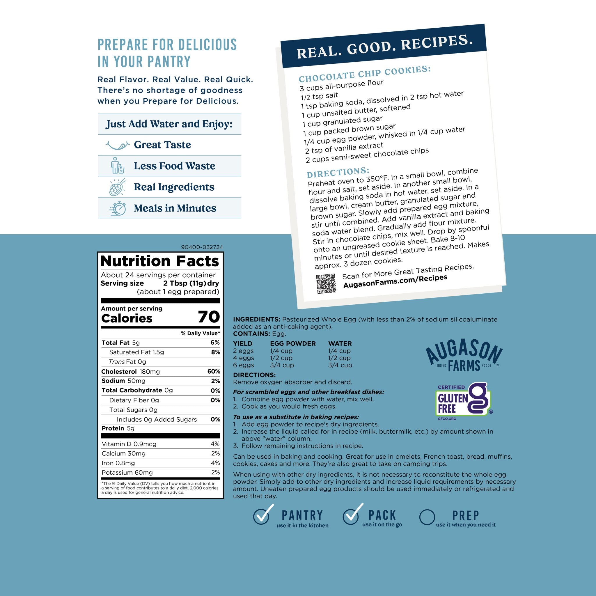 Pasteurized Dried Whole Egg Powder Pouch, 24 Servings
