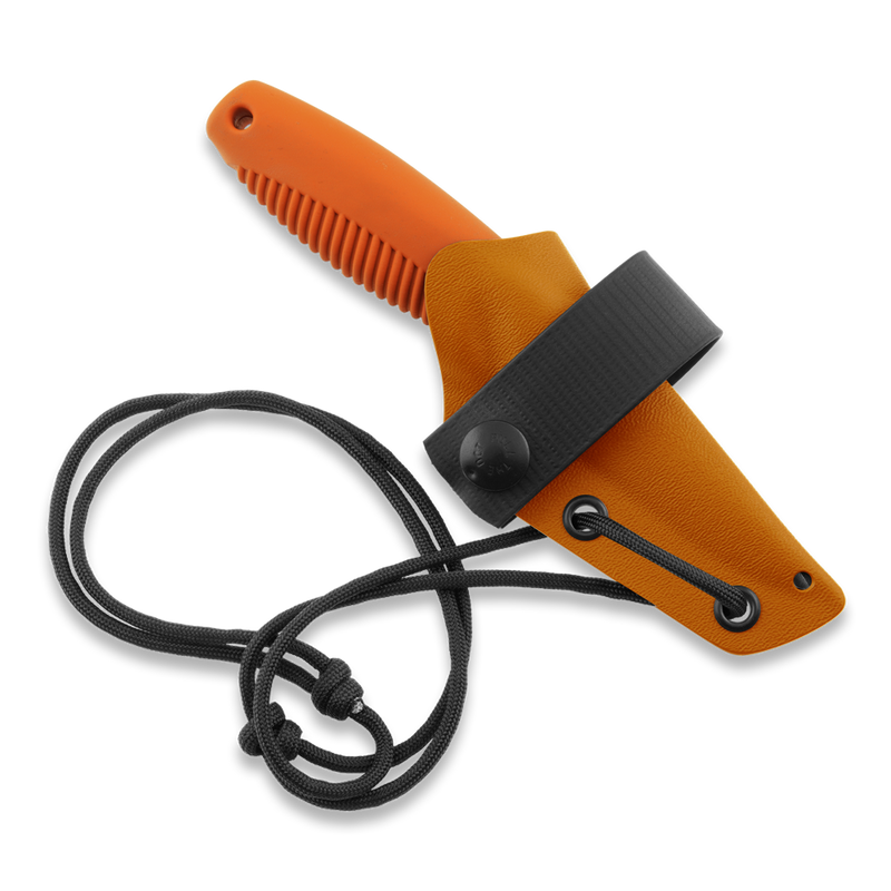 With the Kydex sheath, the knife can be easily carried as a neck knife or horizontally on the belt.