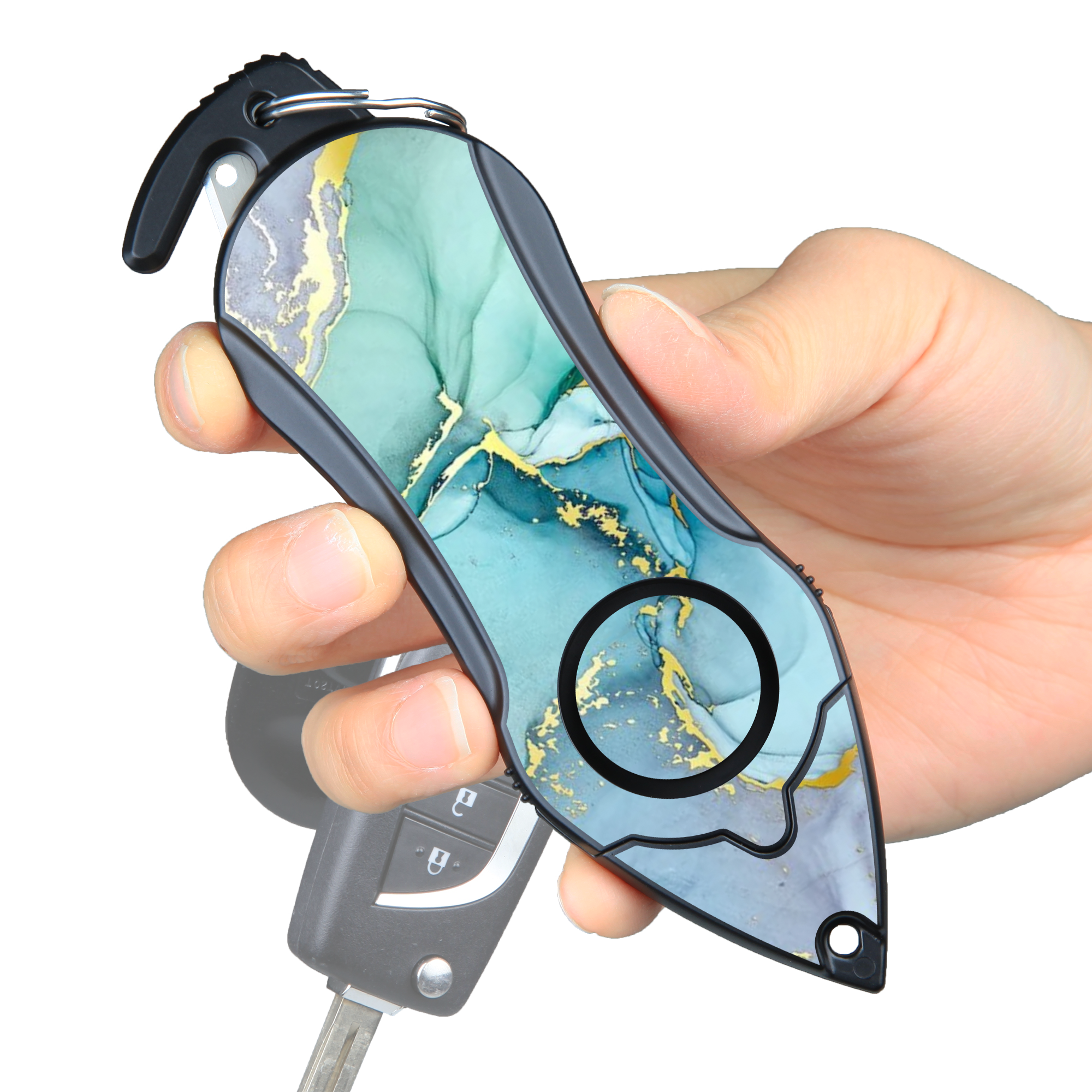Personal Alarm keychain Safety Emergency Tool (Green Marble)