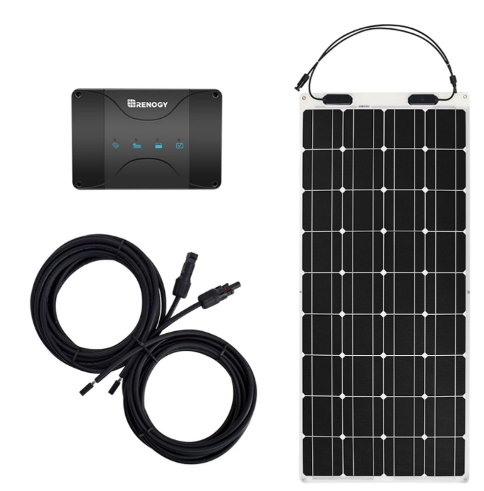The Renogy 100W Flexible Dual Battery Charging Kit provides efficient off-grid power and dual battery charging, designed for versatility in RV, marine, and overland applications. This advanced kit includes a flexible 100W monocrystalline solar panel, a 30A dual battery charge controller, and all necessary accessories to support simultaneous charging of two batteries, ensuring optimized power distribution for starting and auxiliary power needs. The flexible panel's lightweight and bendable design allows for seamless installation on curved surfaces, enhancing power accessibility without compromising vehicle or vessel aesthetics.