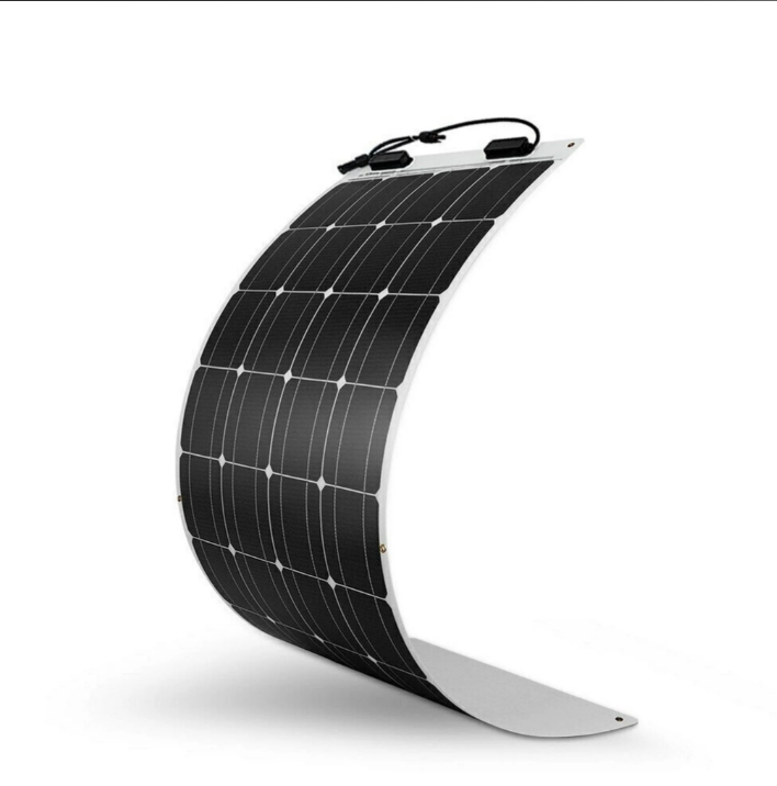 The 100W flexible monocrystalline panel features a high energy conversion rate, providing reliable power even in low-light conditions. Its ultra-lightweight construction and flexibility up to 248 degrees allow it to conform to non-flat surfaces, making it an excellent choice for curved roofs or uneven surfaces on boats and campers.