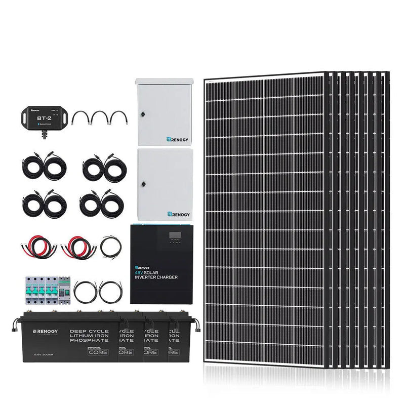 Renogy Complete Cabin Solar Kit 1200W 2500W | Optional 9.6kWh Deep-Cycle AGM / LiFePO4 Batteries