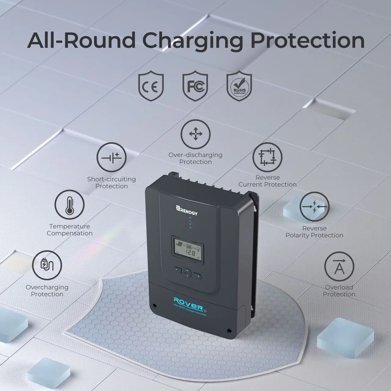 | Certification: CE / ROHSCertification: CE / ROHS | Compatible bluetooth: Renogy BT-1/BT-2 Bluetooth module |
