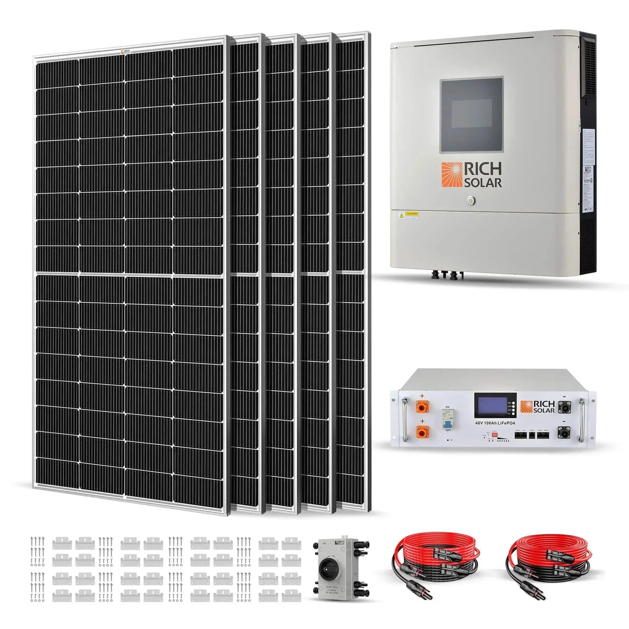 Start your journey to energy independence with the Rich Solar 1250W 48VDC-120VAC Solar Kit!