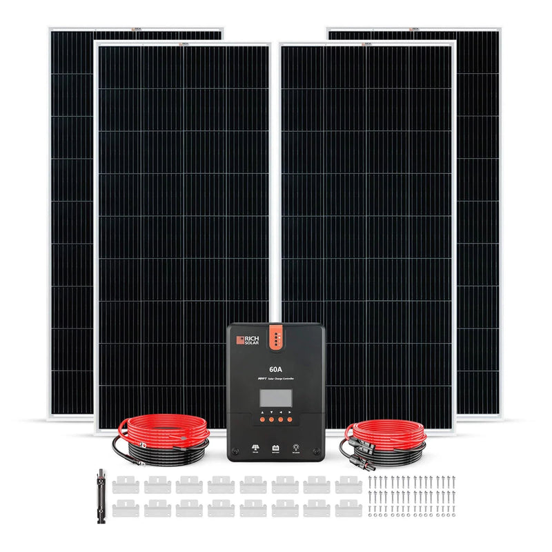 Our largest 12V kit contains 4 high efficiency 200W Monocrystalline panels with 9 busbars and our 60A MPPT controller. This kit can be paired with 4 of our 100AH 12V Lithium batteries and is capable of powering off-grid RV solar systems, small RVs, and tiny homes. For a quieter, more peaceful outdoor experience, go solar now and start powering your RV solar setup, boat, or trailer!