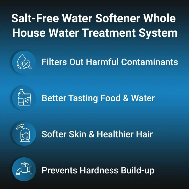 Transform your home’s water quality with the RKIN - OnliSoft Pro Salt-Free Water Softener and Whole House Carbon Filter System. This innovative system not only ensures pure, clean water for your entire household but also protects your plumbing and appliances from harmful scale build-up. Invest in your family’s health and comfort with a solution that promotes healthier skin and hair while offering exceptional water filtration.