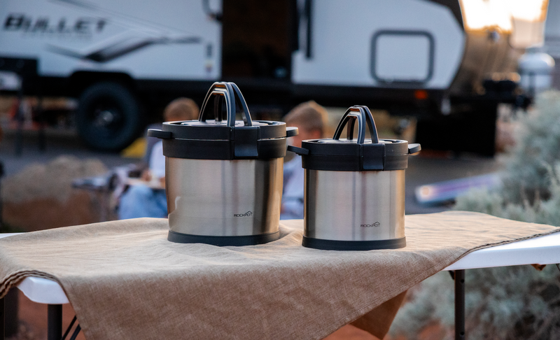 The RockPot Mini is an easy-to-use portable cooker that requires no propane or electricity that can cook raw food. It is perfect for feeding 1-3 people. The RockTablet is our stone-based heating source for Rockpot and can be heated over an open fire or over a stovetop (gas, electric, glass or butane) and can be reheated over 1,500+ times.