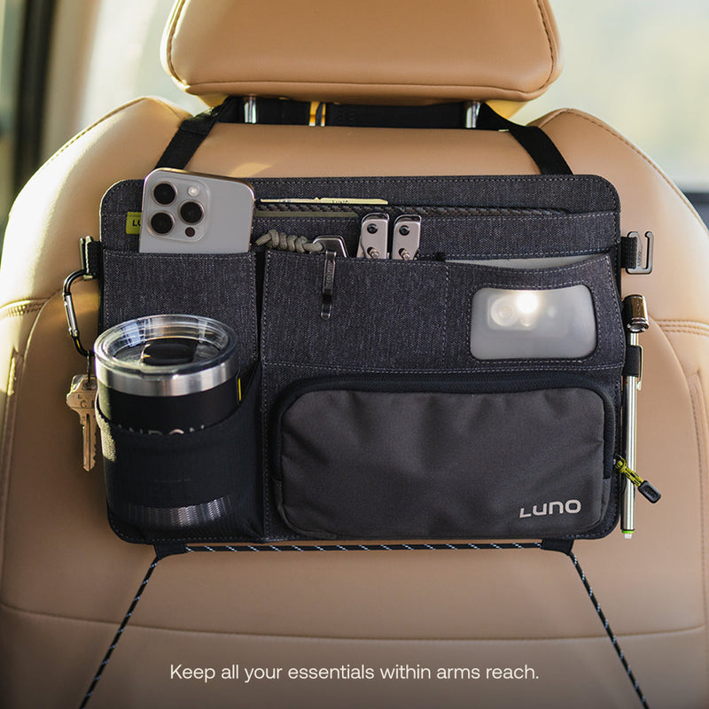 The “nightstand” of car camping boasts a universal fit, a microfiber-lined pocket specifically for your phone, a headlamp pocket with a translucent window for a reading light at night, a removable pouch for added organization on the go, two G-hooks for handy key storage, a slot for tablets, books and more. Guaranteed to keep you organized, the Seatback Organizer is an essential for any vehicle.