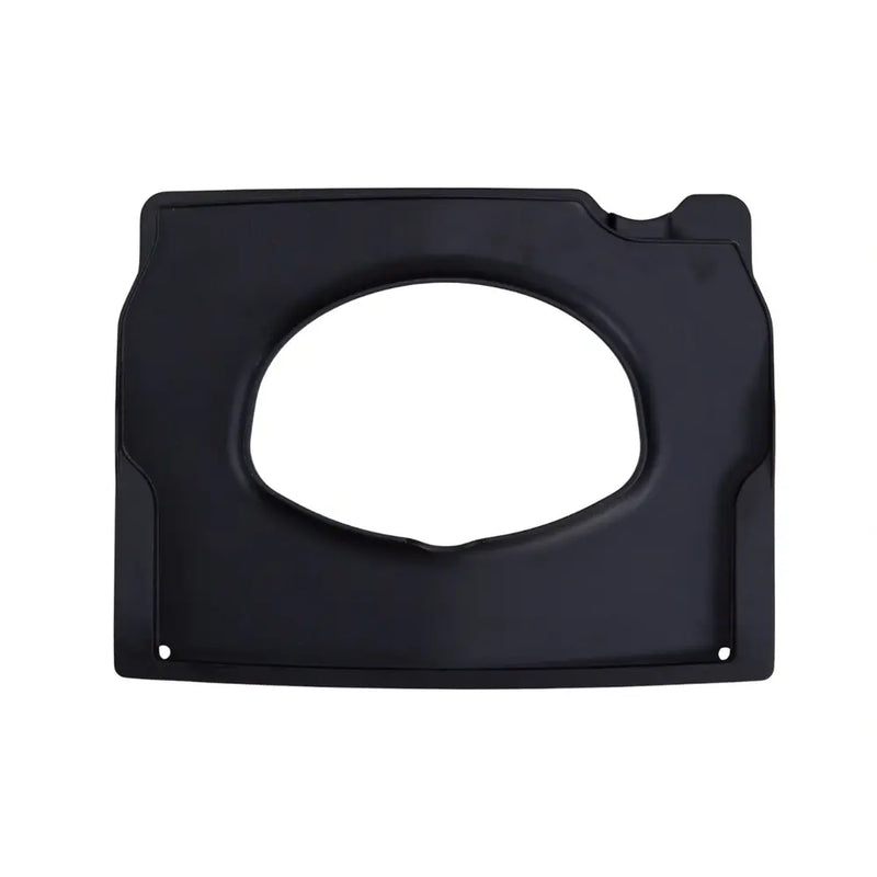 Our new cover sits on top of the solids bin and is shaped to meet the "drop zone" opening exactly. It stays on the bin permanently.