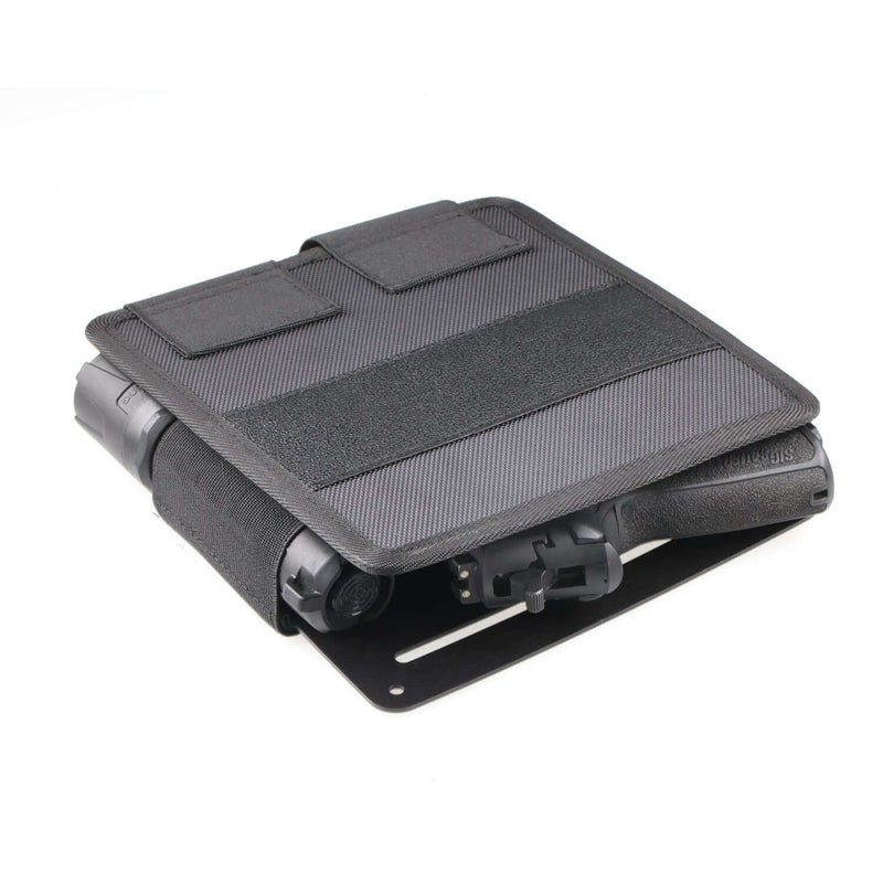 - Original 2-Section design provides multiple safe ways to install the holster to keep the firearm within your reach. It can be placed under the mattress or hung bedside, mounted under the desk or hung desk-side, and folded flat for easy packing and traveling.