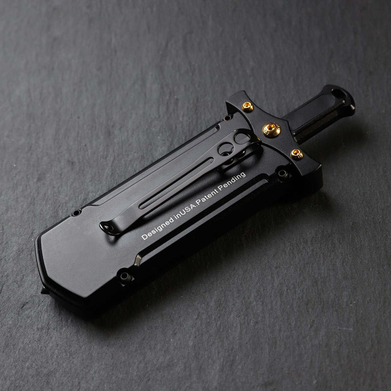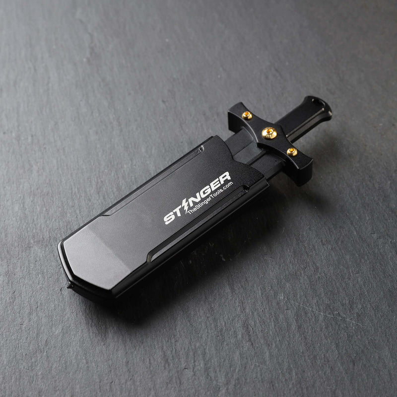 This design is truly legendary and unparalleled. Taking inspiration from Final Fantasy's iconic Buster Sword, Stinger Tools has created the Buster Blade, currently under pending patents. Combining the functionality of a utility knife with emergency escape tools, its unique serrated edges and tungsten glass breaker make it a cool everyday carry gadget. The scabbard can serve as a grip extension, enhancing leverage and comfort during use.