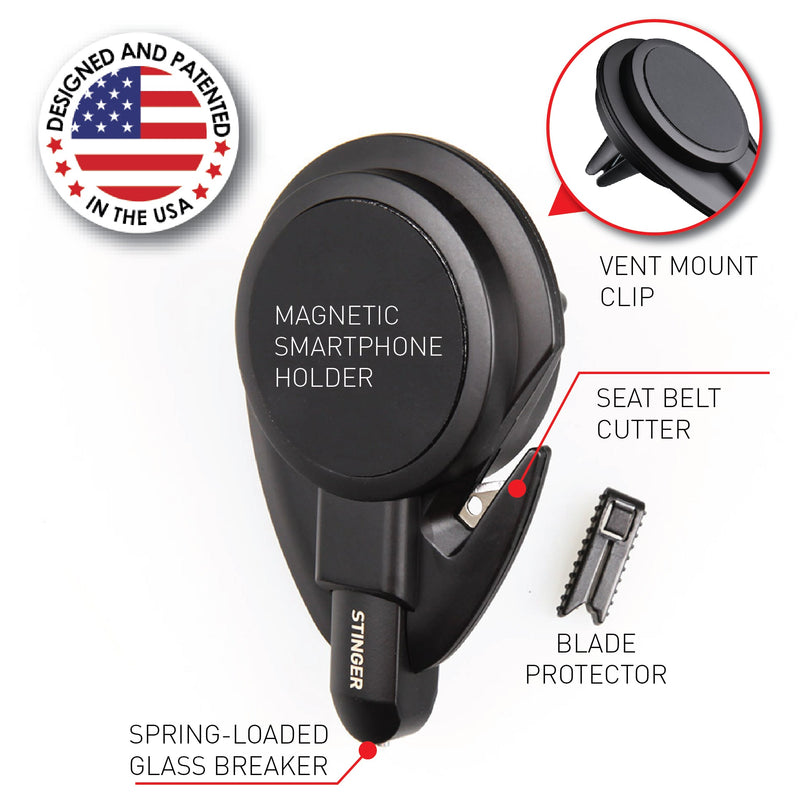 Stinger Car Vent Mount Magnetic Phone Holder Emergency Tool (Black) (SC)