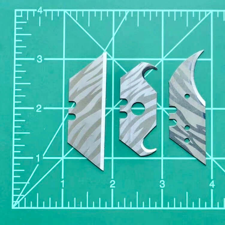 - The package includes 3 utility blades: 1 Trapezoid blade, 1 Concave Trimming blade, and 1 Hook blade.