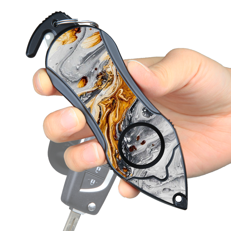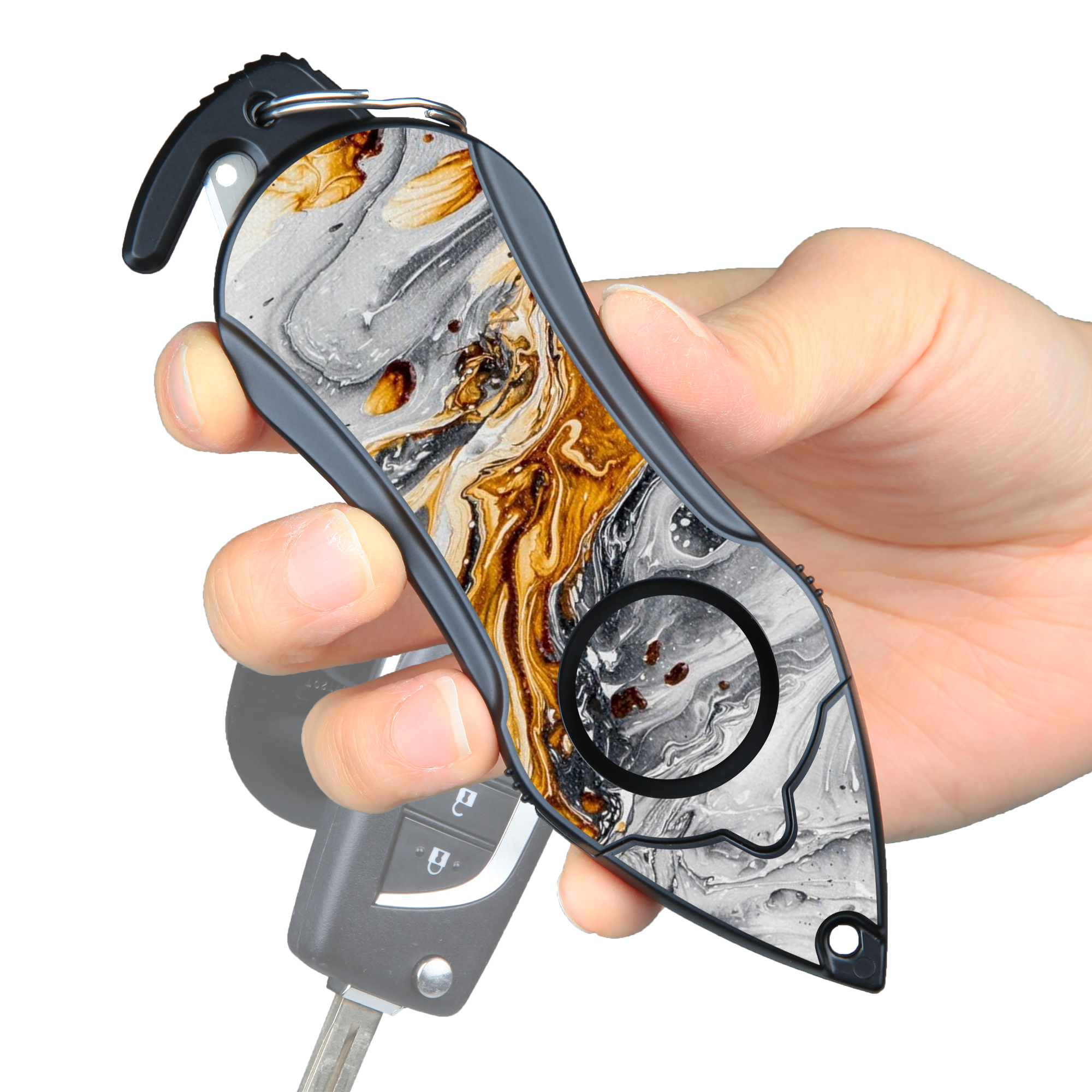 Stinger Personal Safety Alarm Keychain Emergency Tool: Siren Alarm, Seat Belt Cutter, Glass Breaker (Black Marble) (SC)