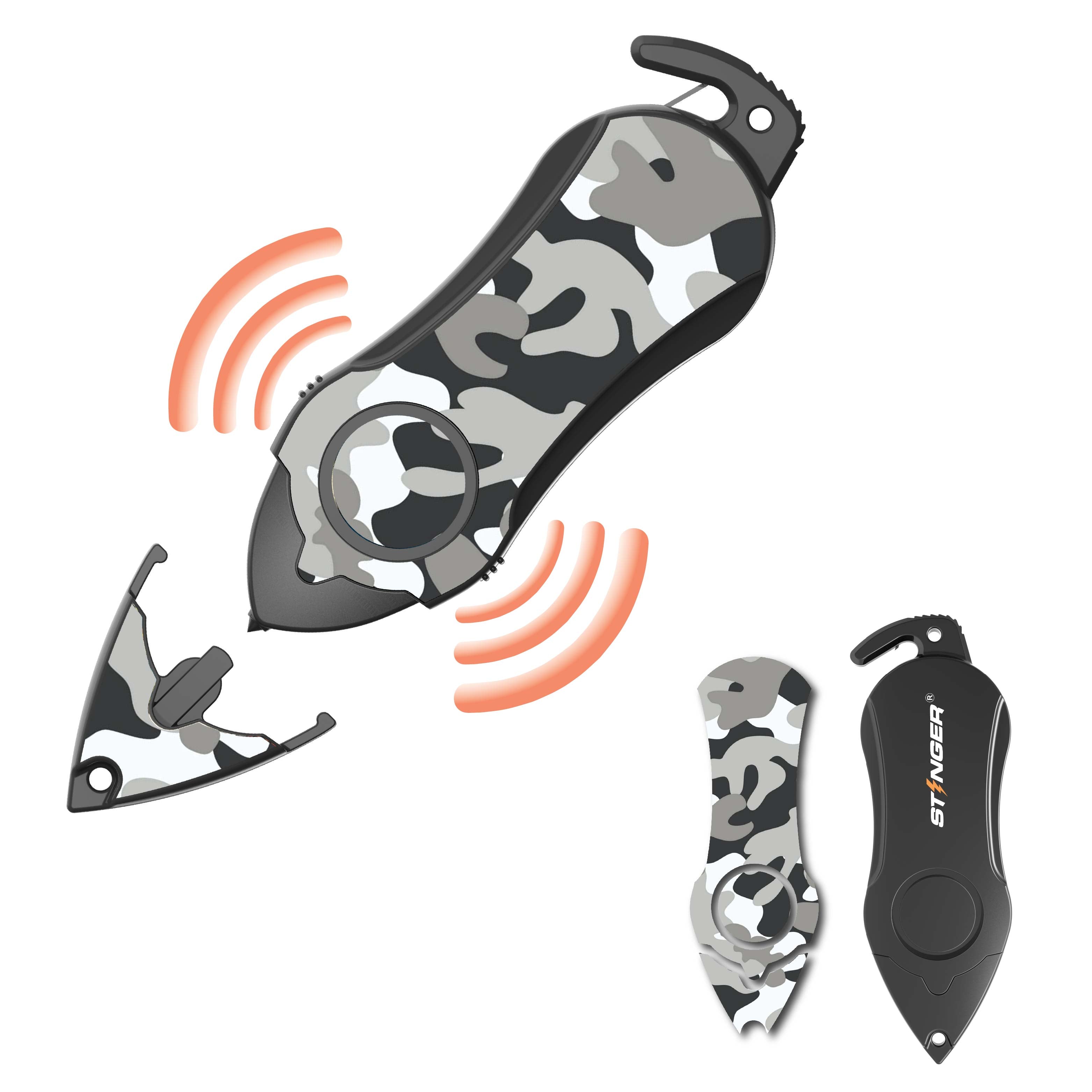 Stinger Personal Safety Alarm Keychain Emergency Tool: Siren Alarm, Seat Belt Cutter, Glass Breaker (Camouflage Black) (SC)