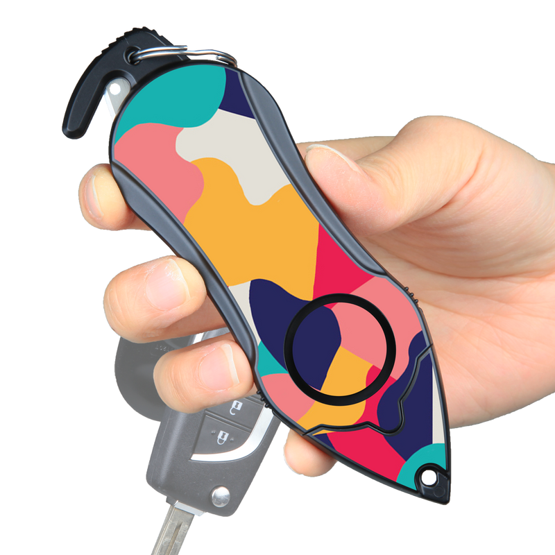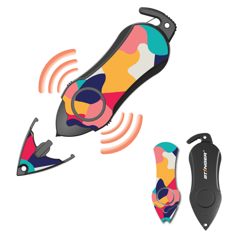 The Stinger Personal Alarm is a compact 3-in-1 emergency tool that combines a personal safety alarm siren, a seatbelt cutter, and a hardened steel car window breaker.