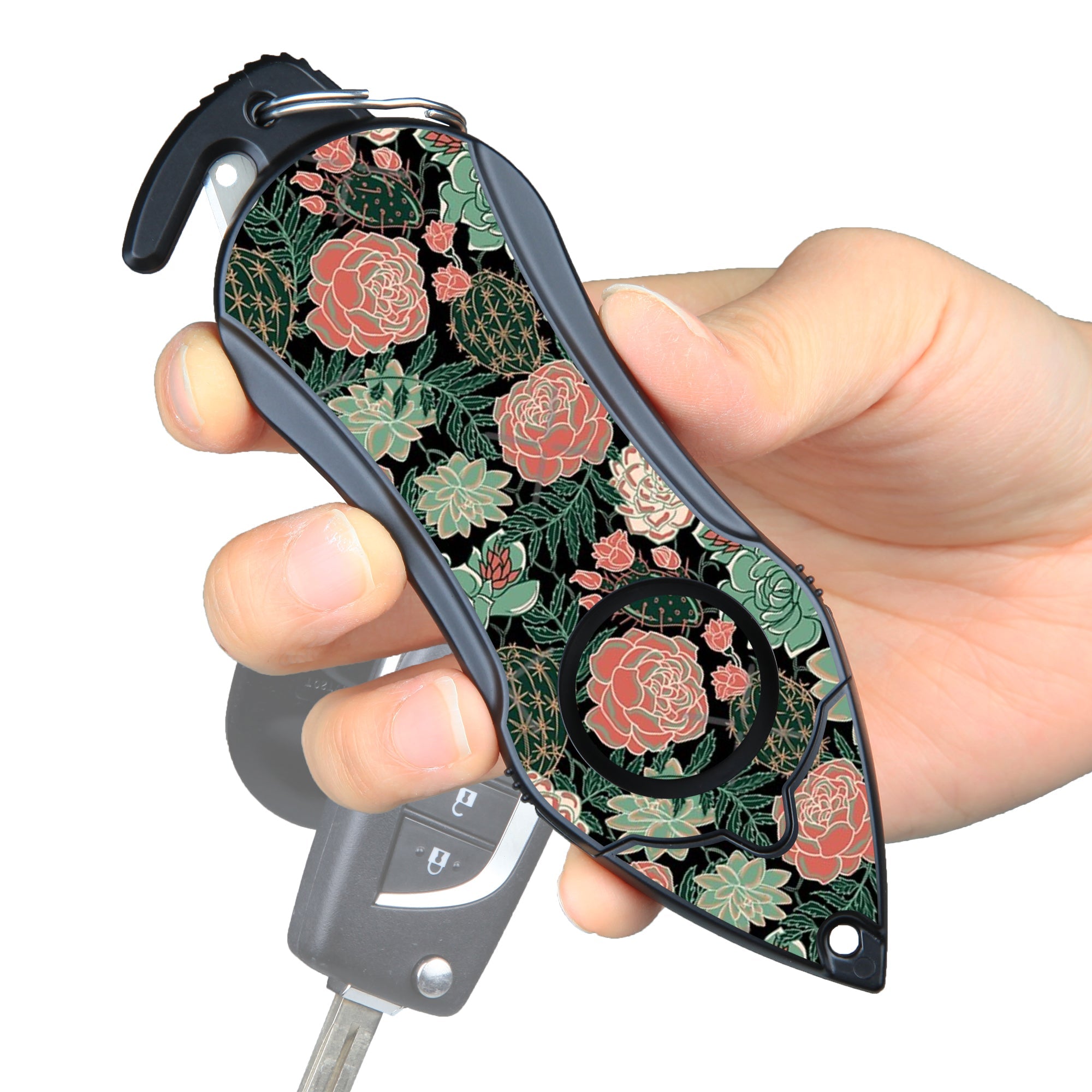 Stinger Personal Safety Alarm Keychain Emergency Tool: Siren Alarm, Seat Belt Cutter, Glass Breaker (Green Flower) (SC)