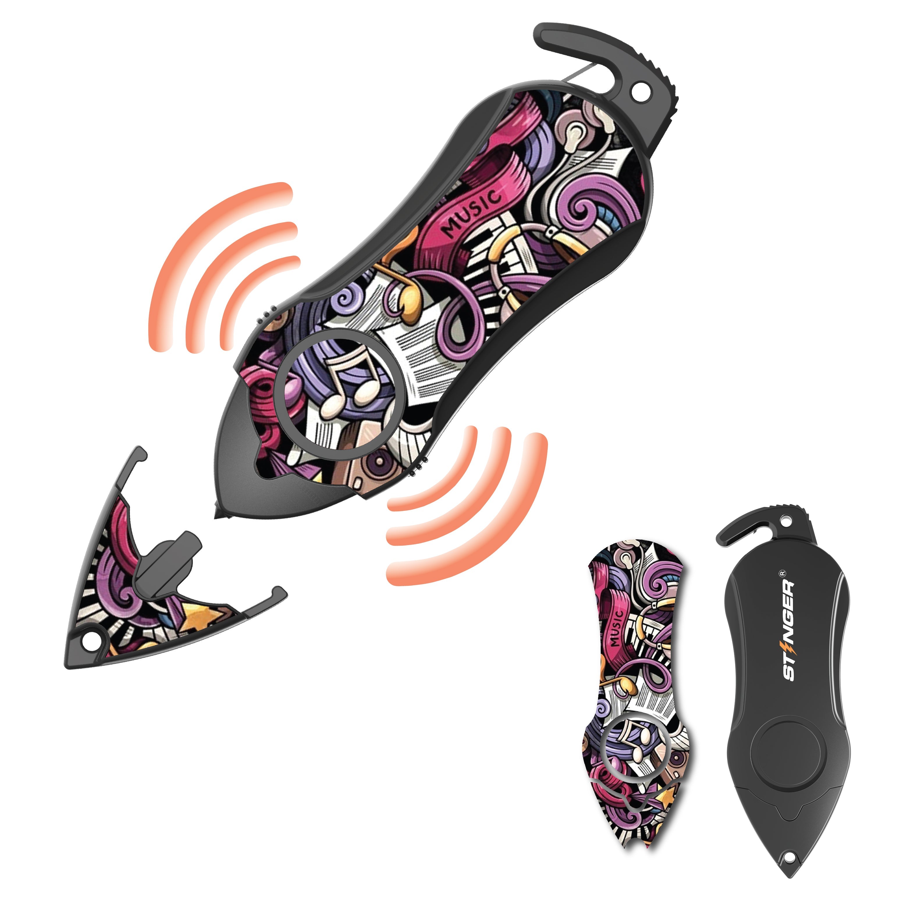 Stinger Personal Safety Alarm Keychain Emergency Tool: Siren Alarm, Seat Belt Cutter, Glass Breaker (Music) (SC)